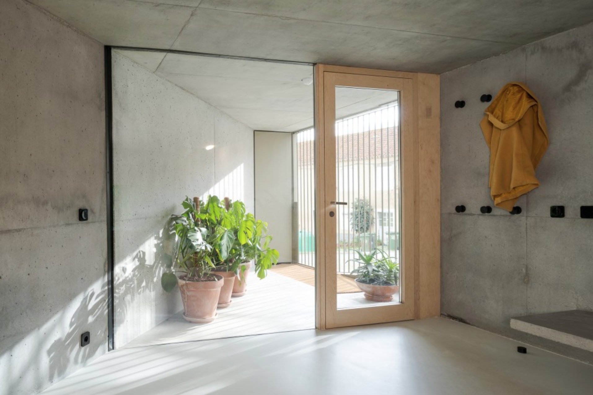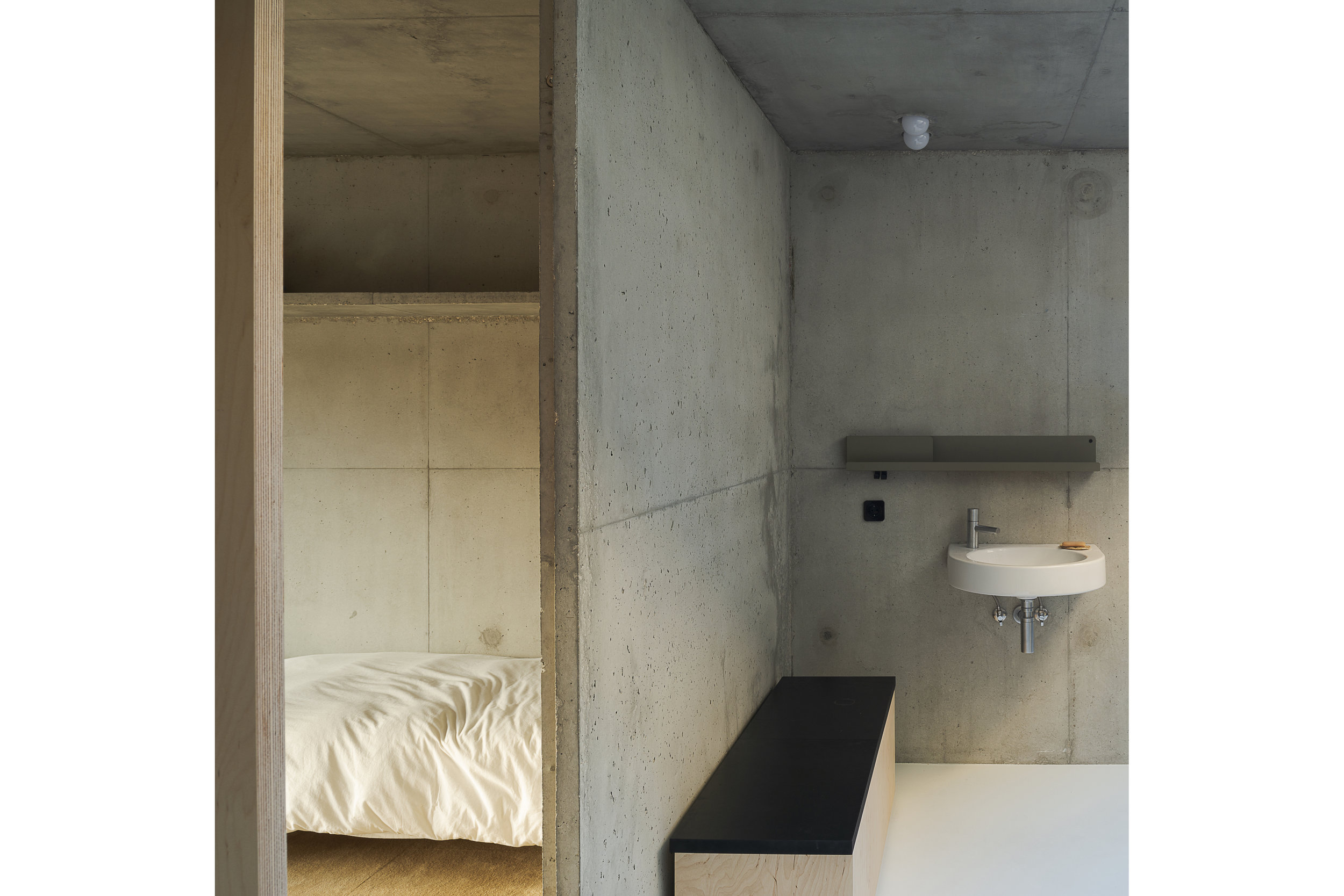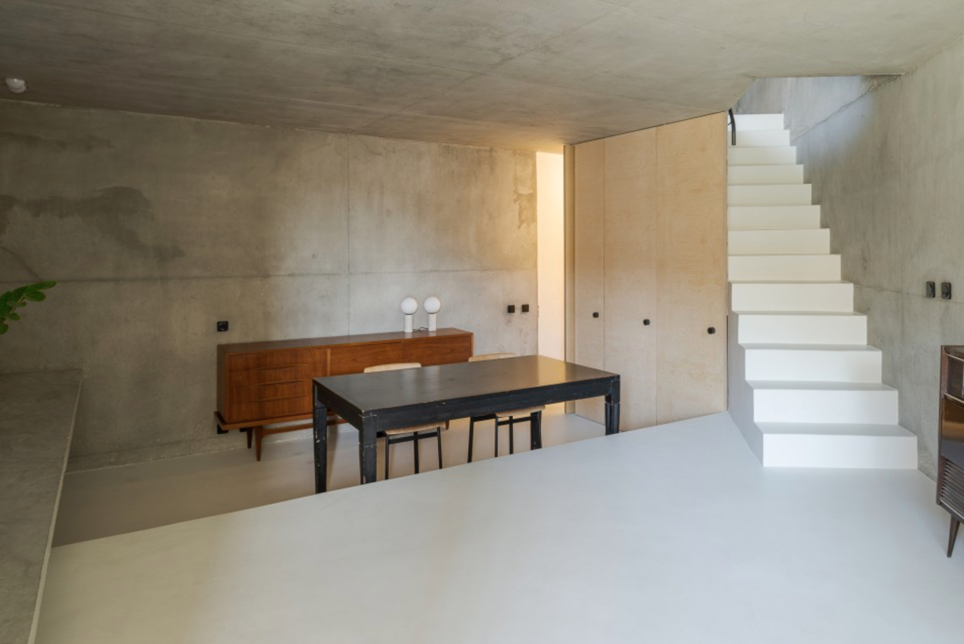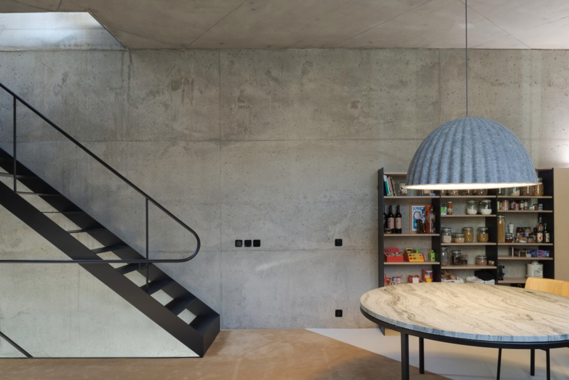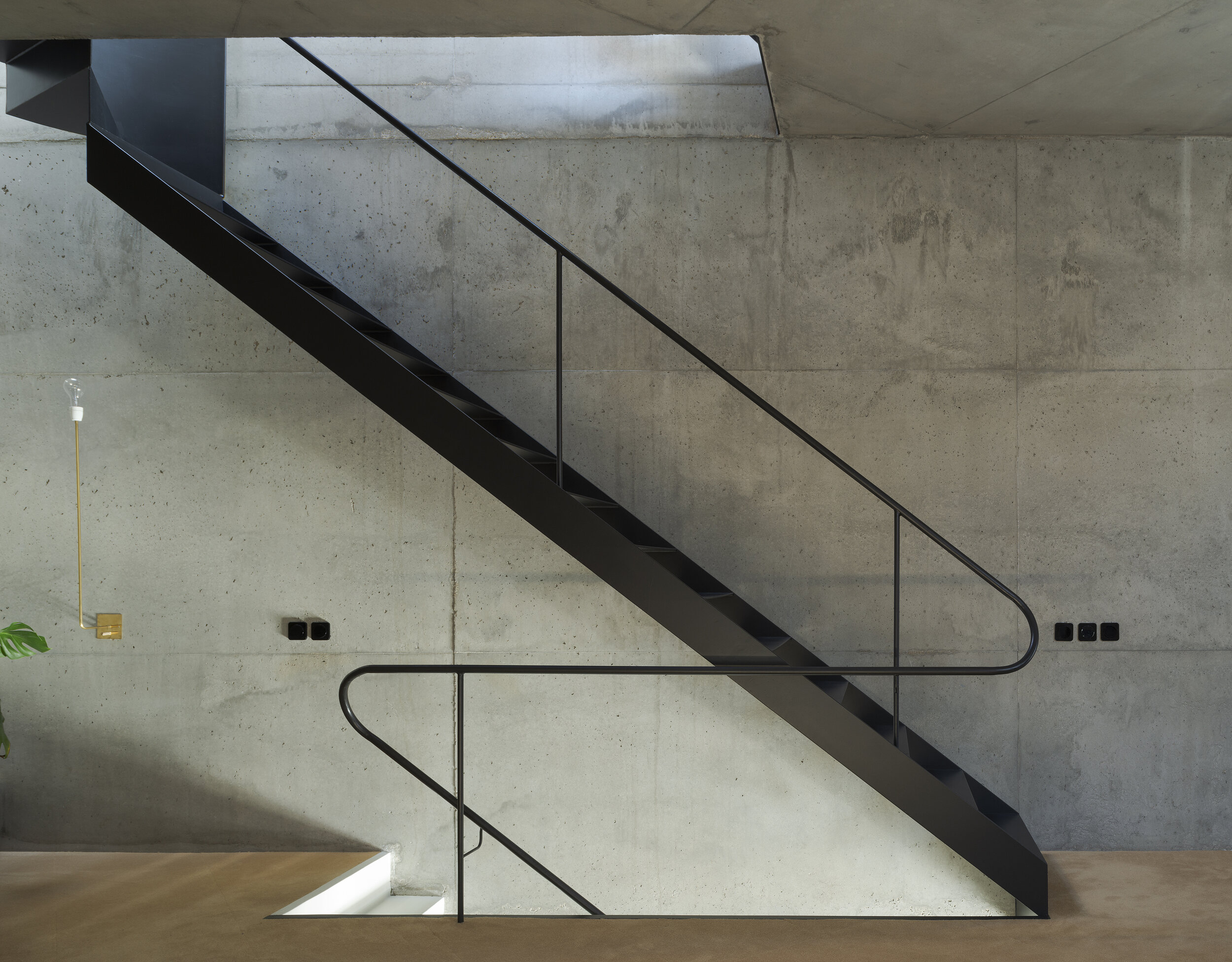 내부 인테리어에 노출 콘크리트를 그대로 활용하였고 블랙 스틸이나