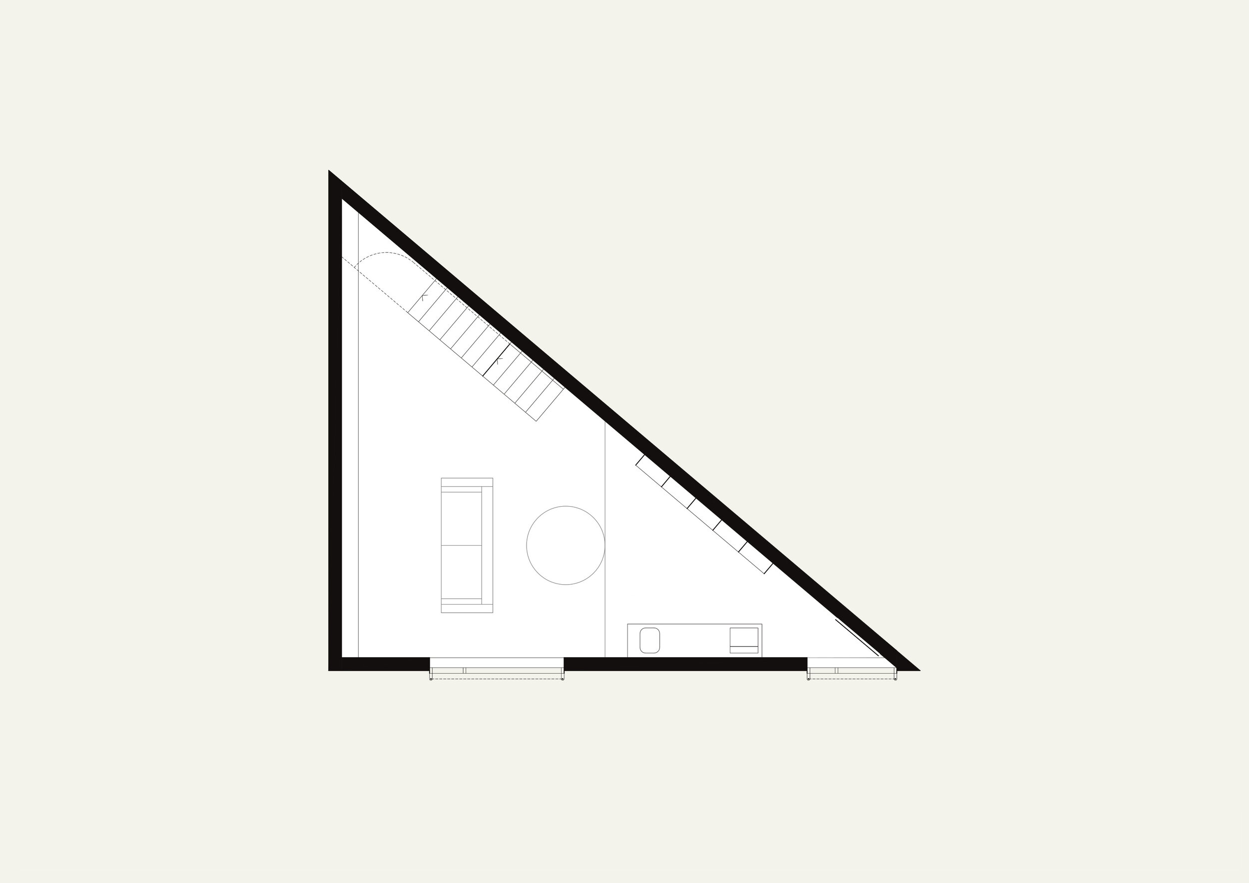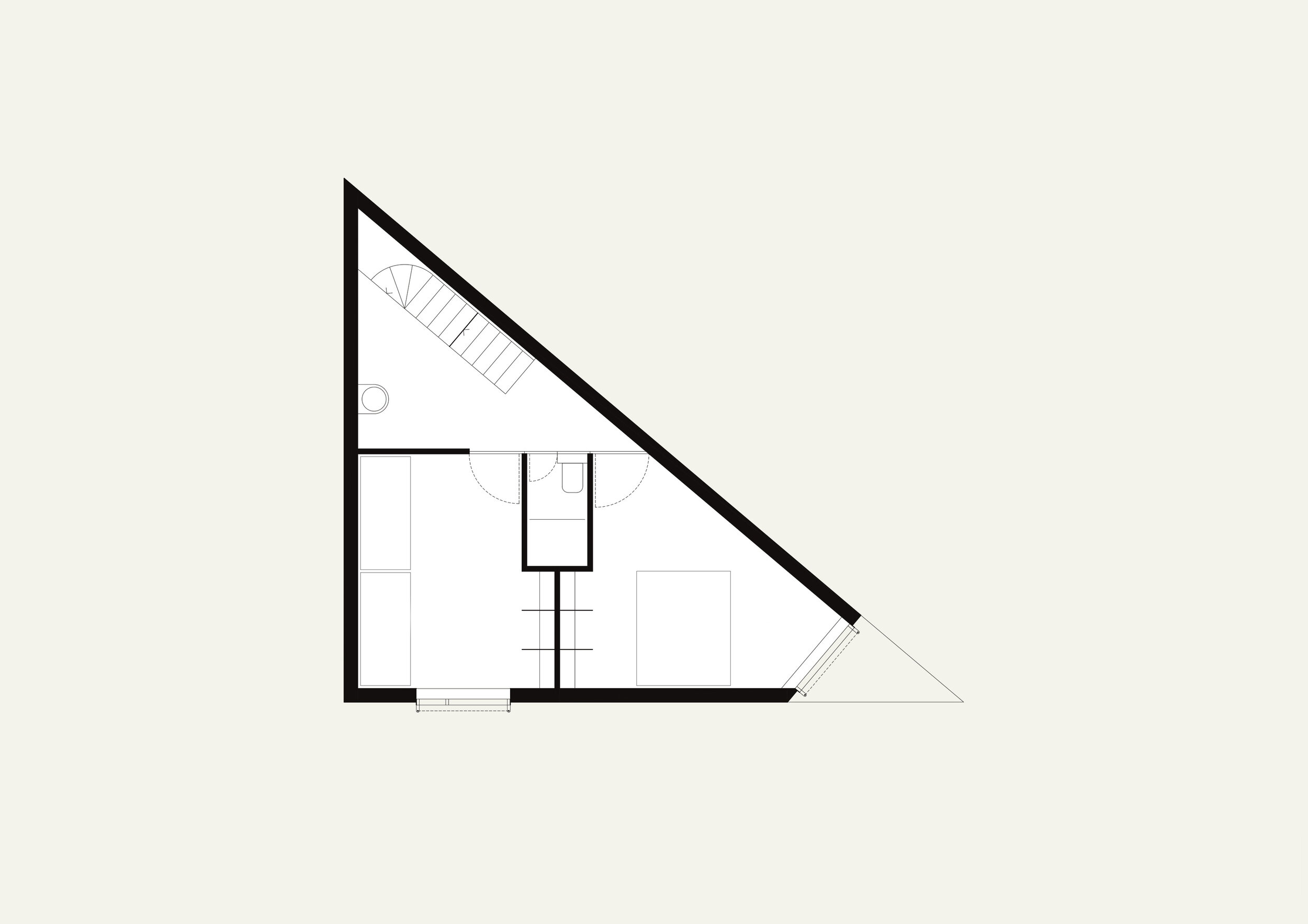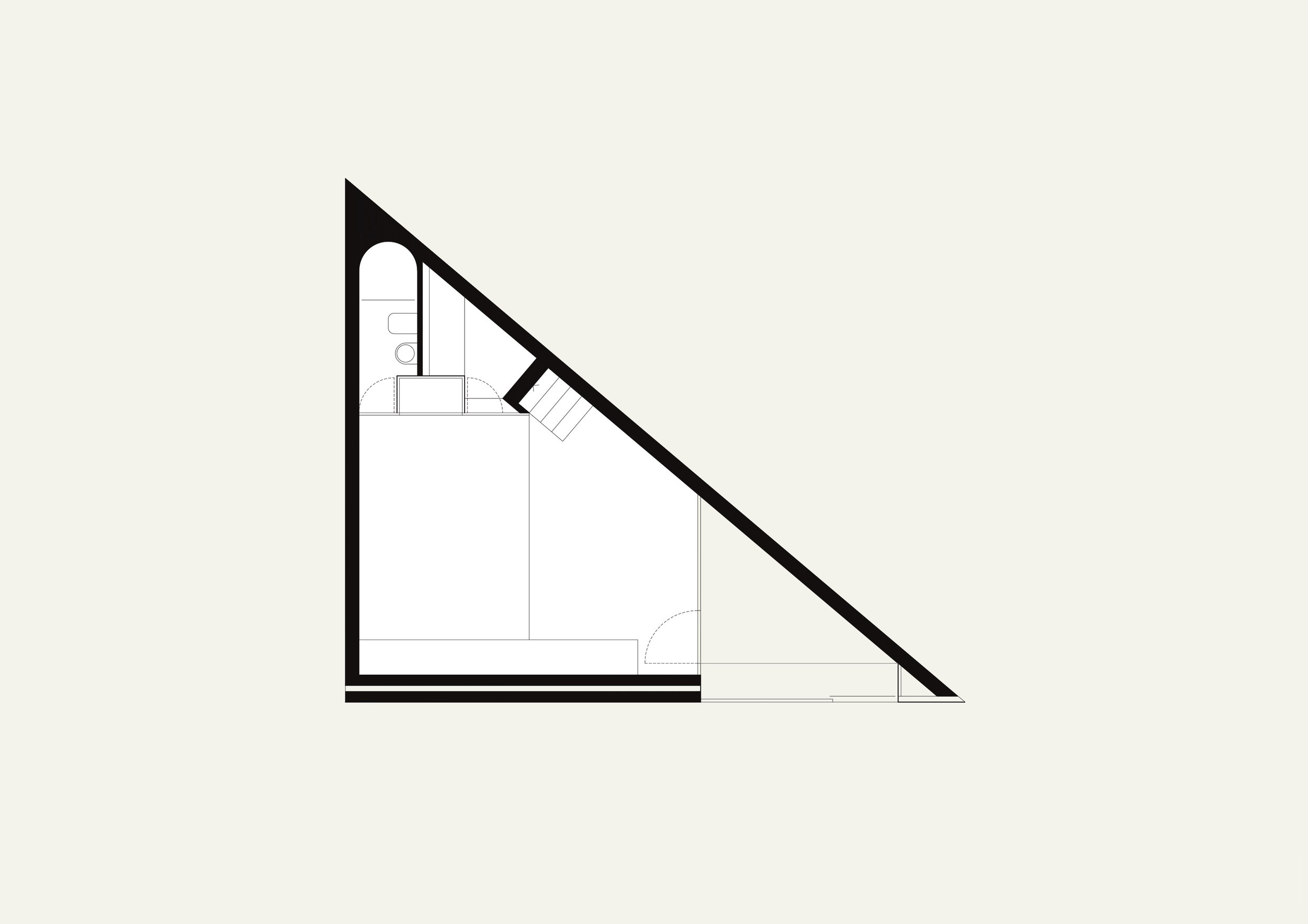 삼각형 모양의 주택이다 보니 모서리 활용이 중요했는데,