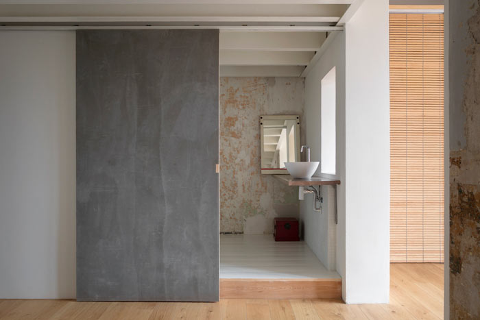 기존 주택에서 나무 보들과 기와 지붕만 남기고 모두 철거하였고