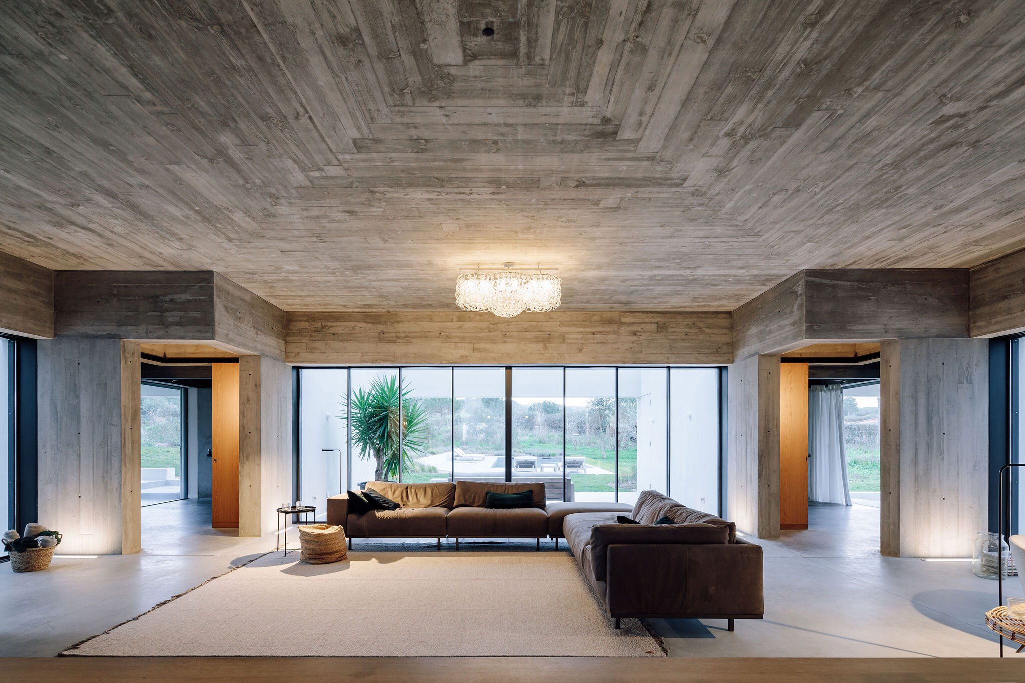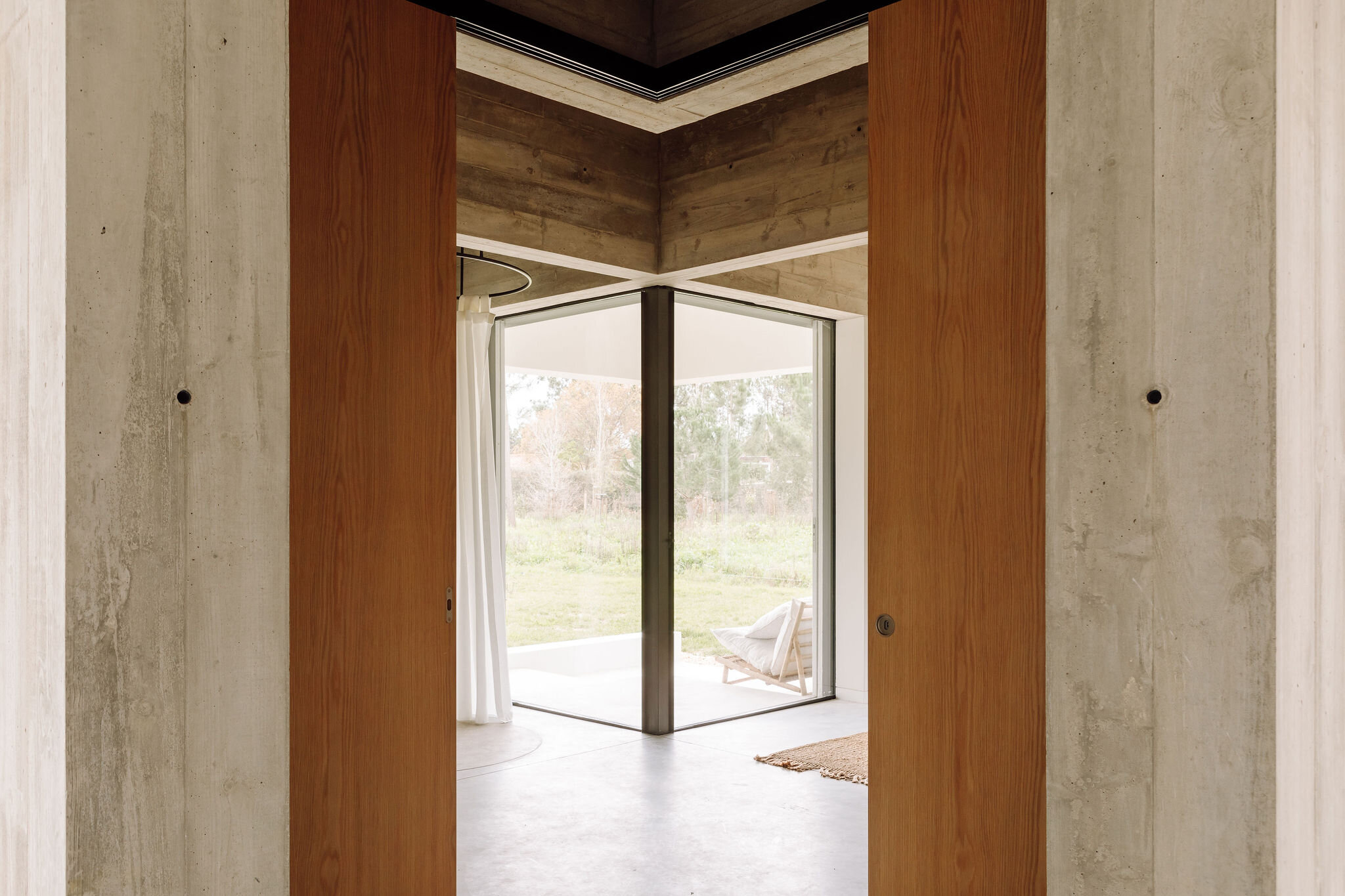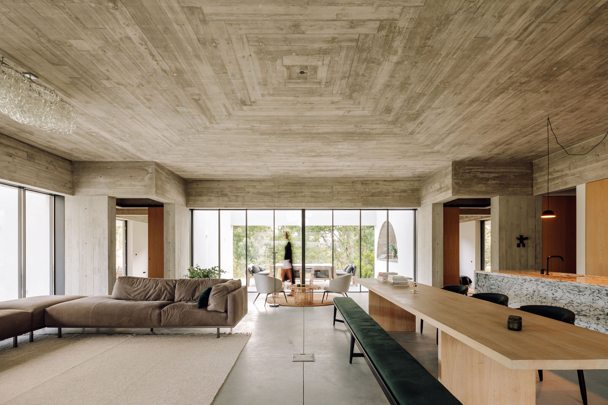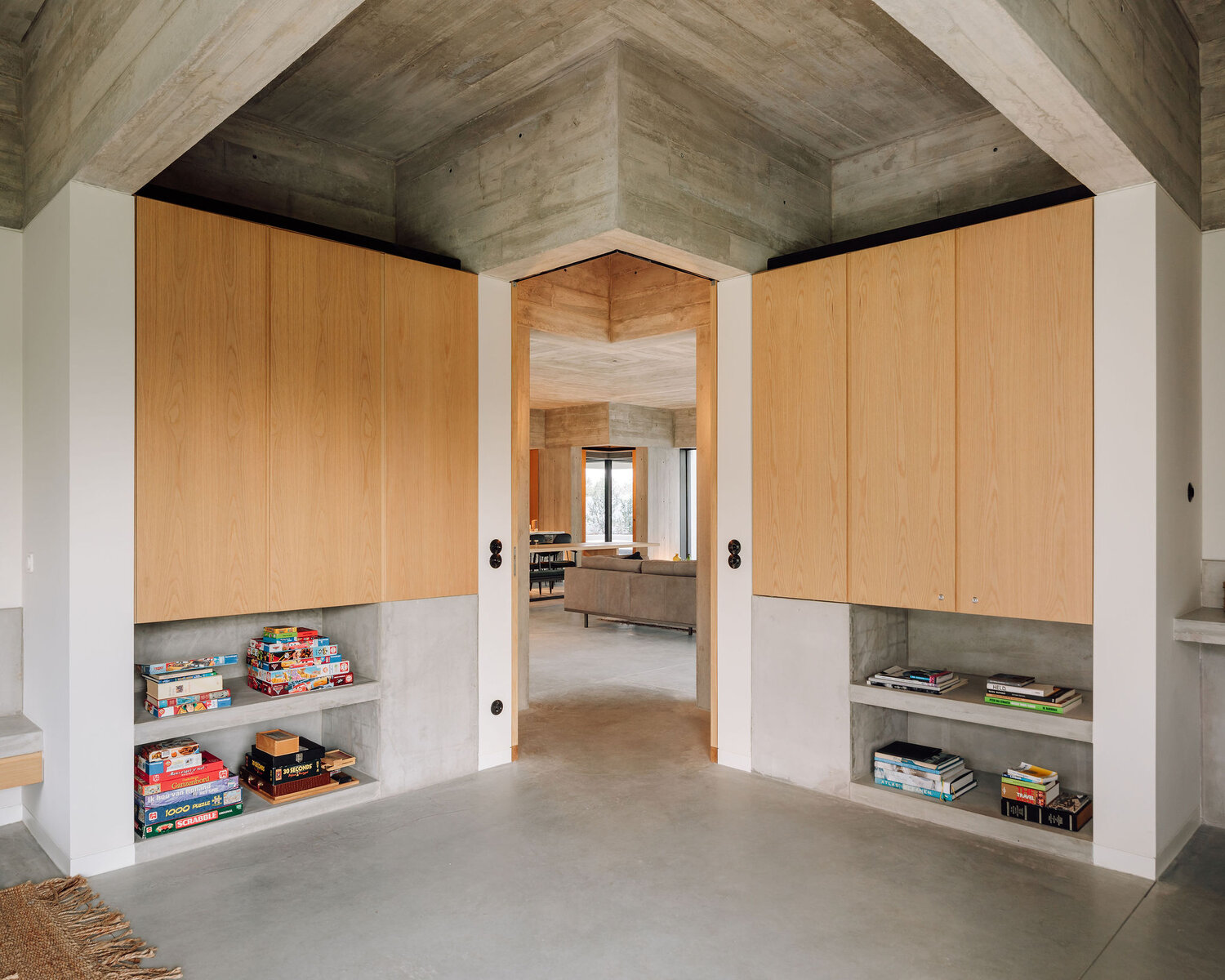 단층의 집에 가운데에는 천장과 바닥이 콘크리트로된 공용공간이 자리잡고 있습니다.
