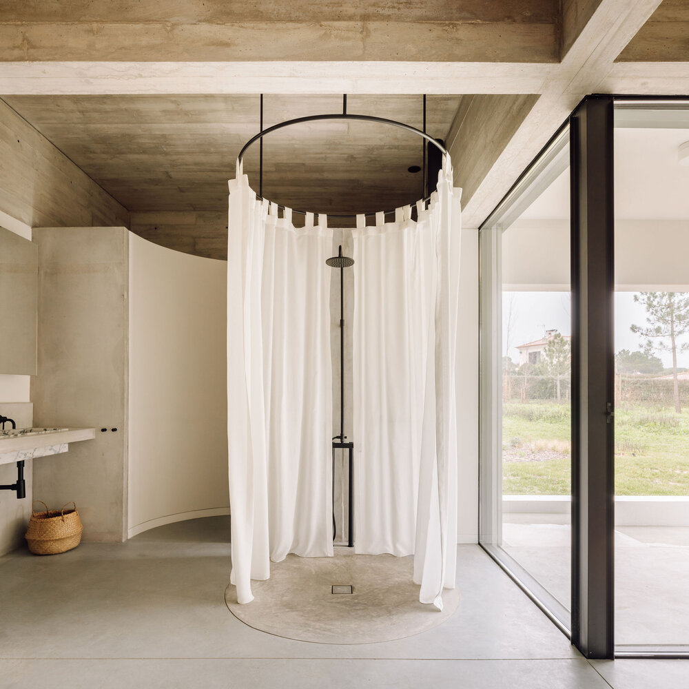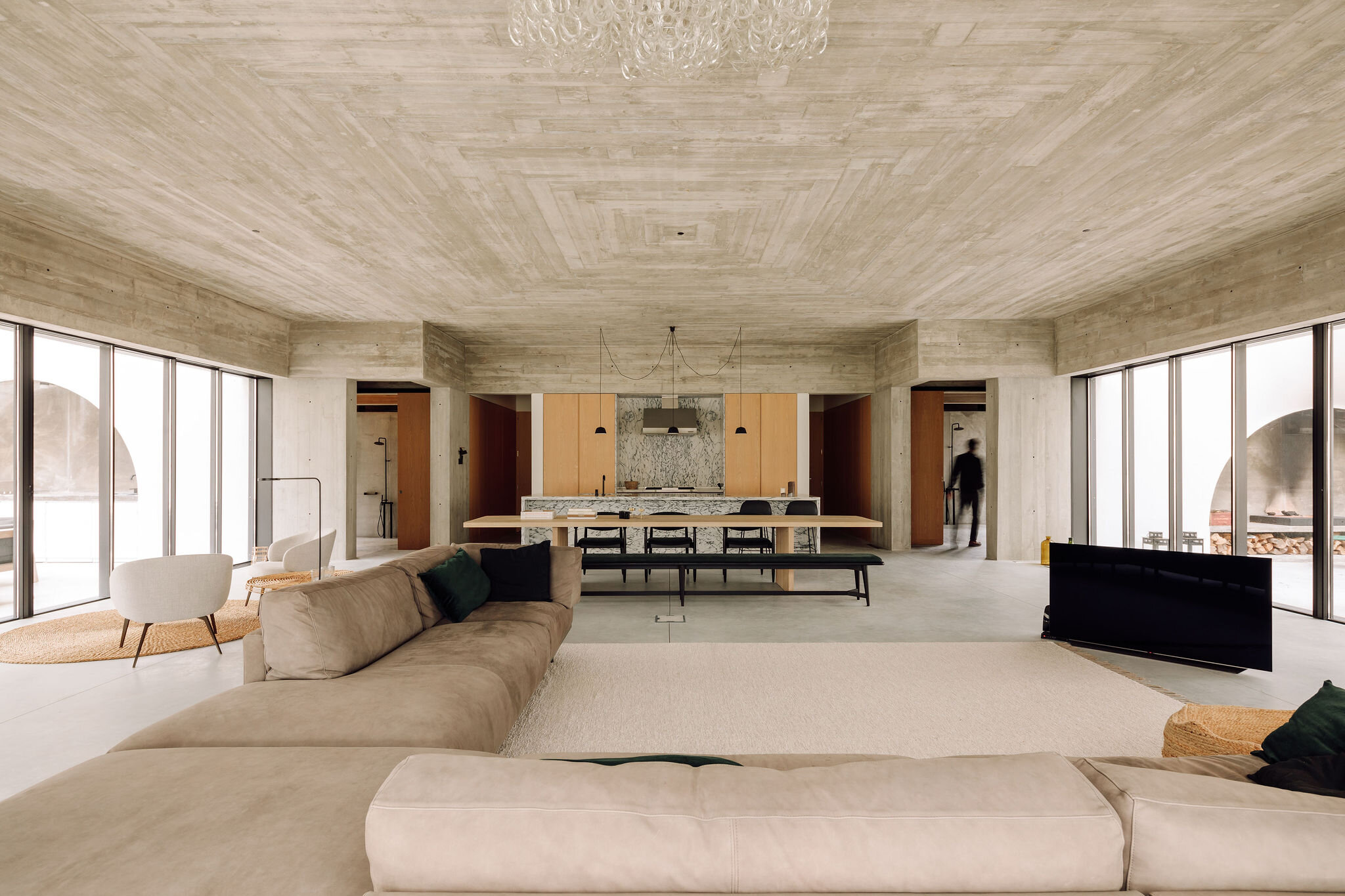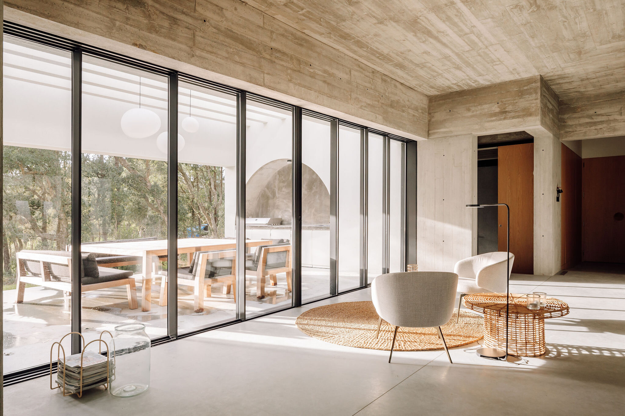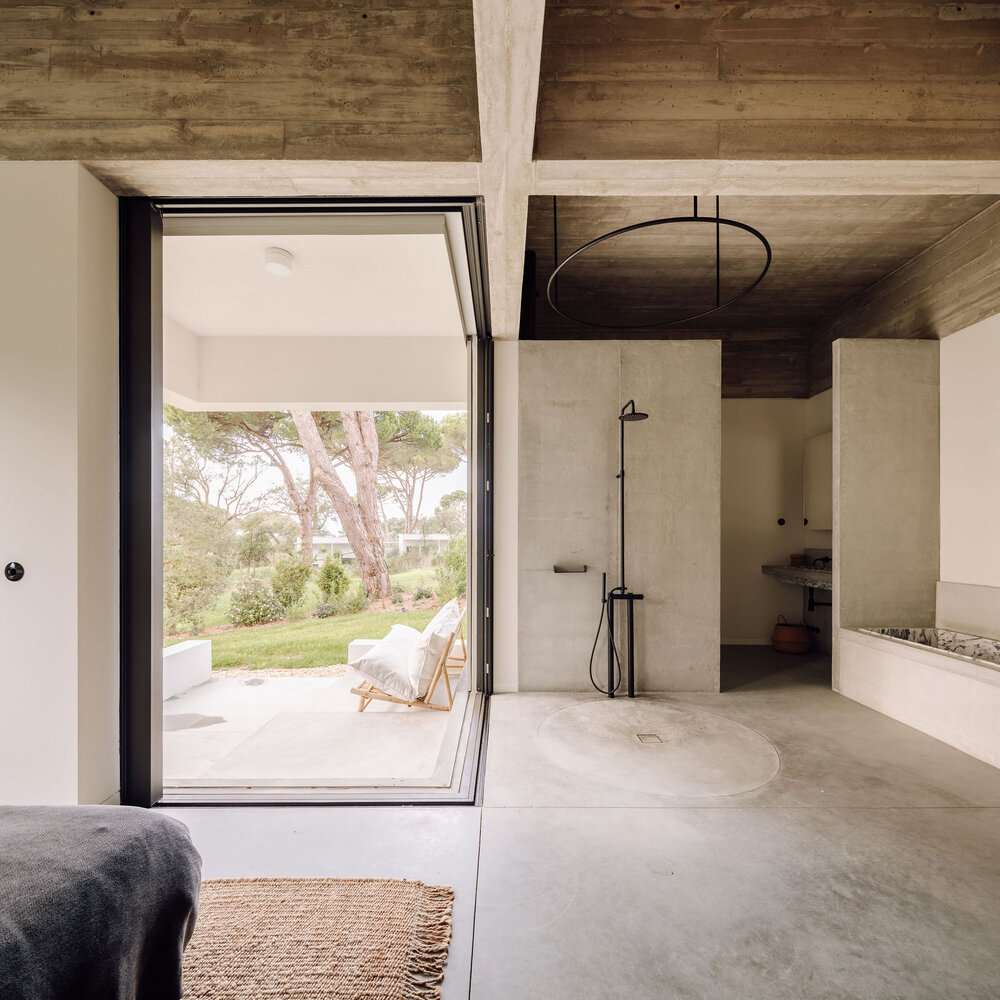 단층의 집에 가운데에는 천장과 바닥이 콘크리트로된 공용공간이 자리잡고 있습니다.