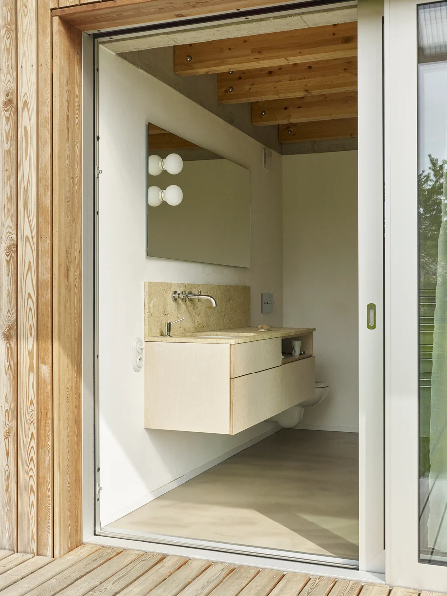 1층의 주거 층은 자연스럽게 나무로 마감되어 조화롭게 어울립니다.