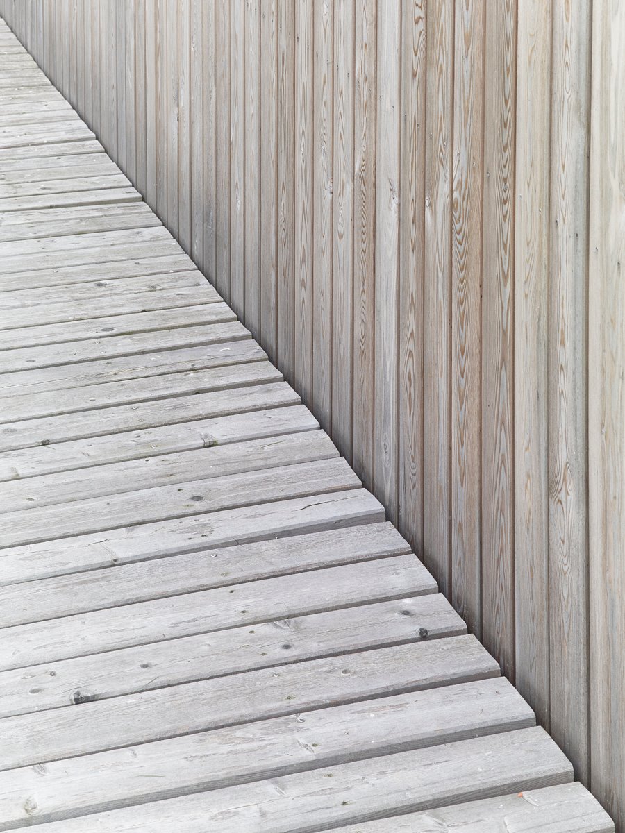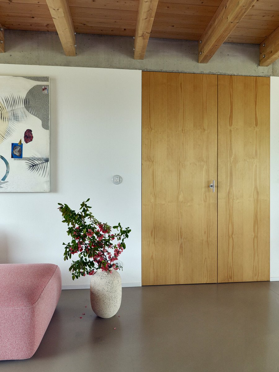 1층의 주거 층은 자연스럽게 나무로 마감되어 조화롭게 어울립니다.