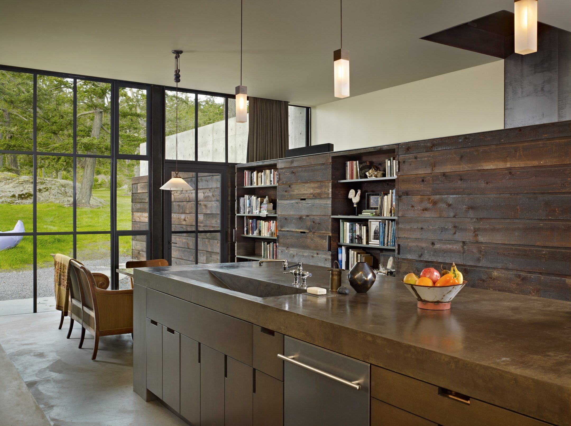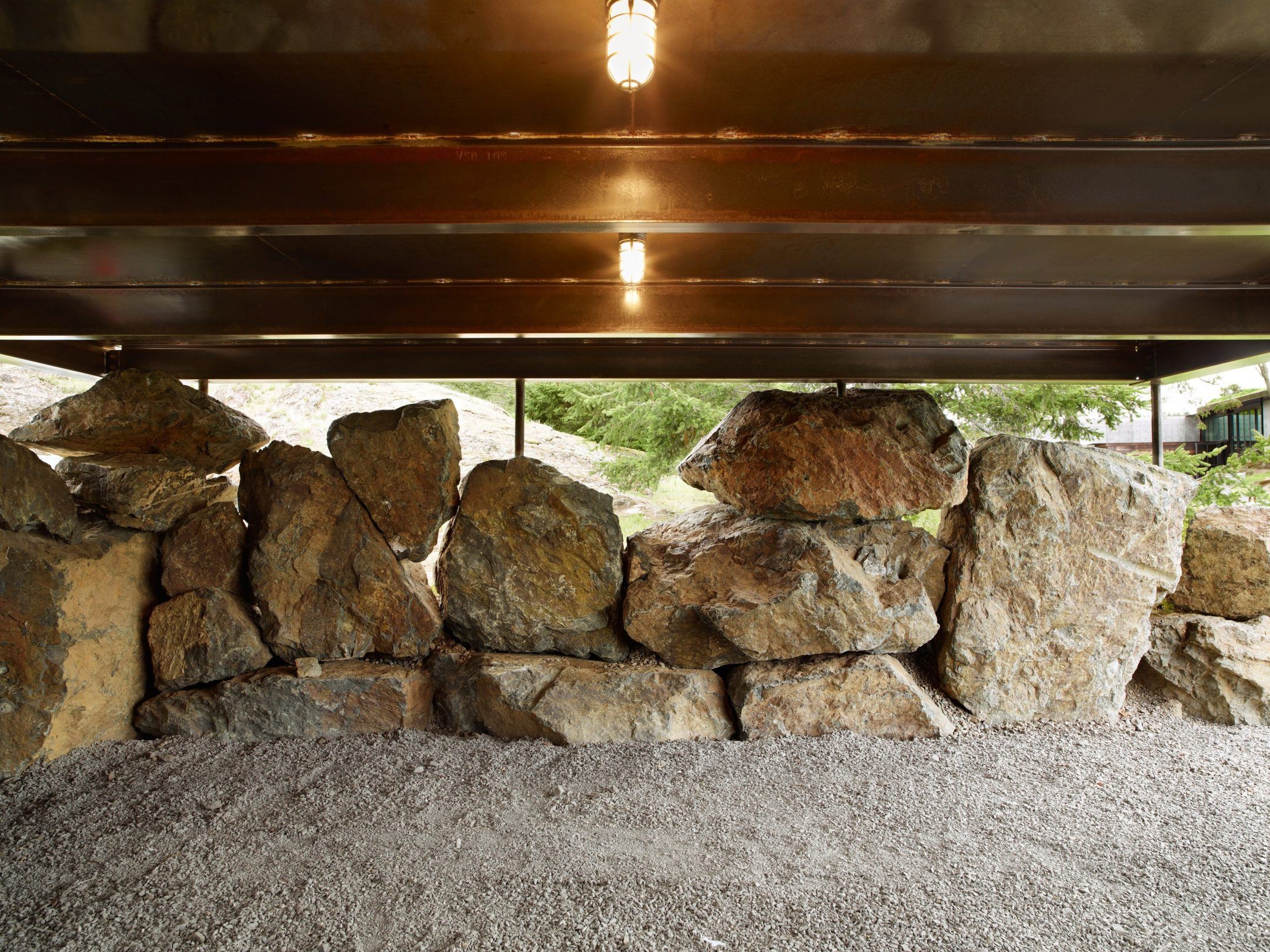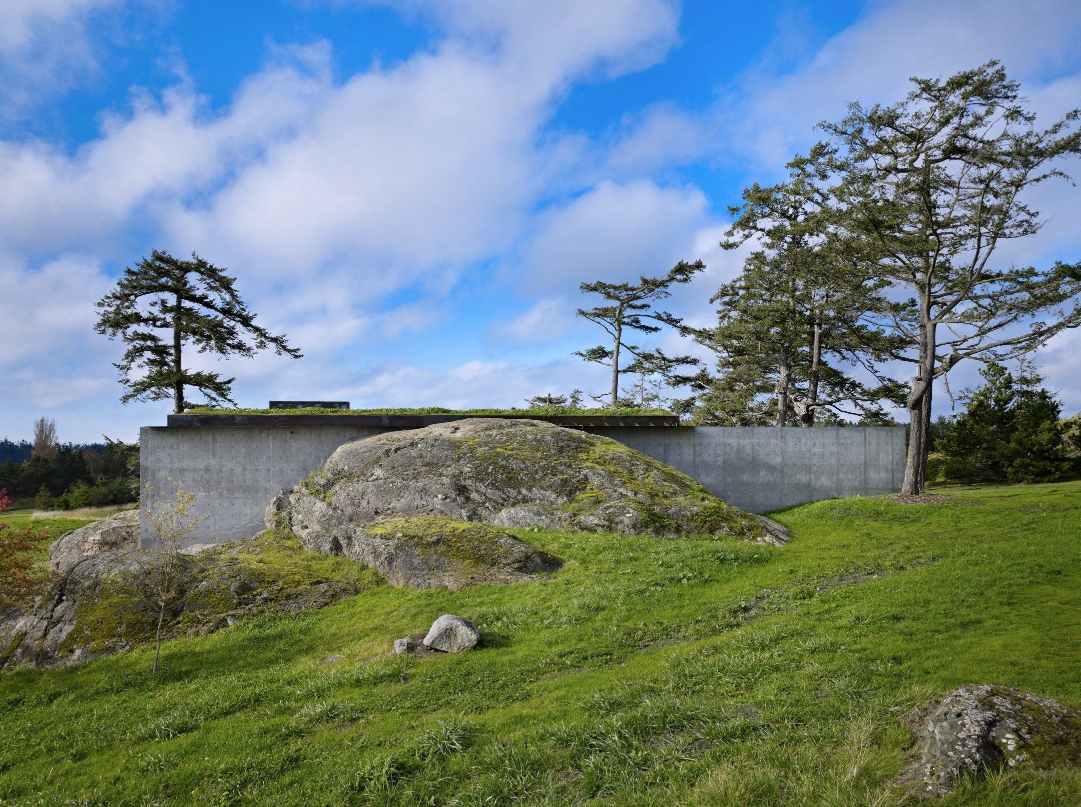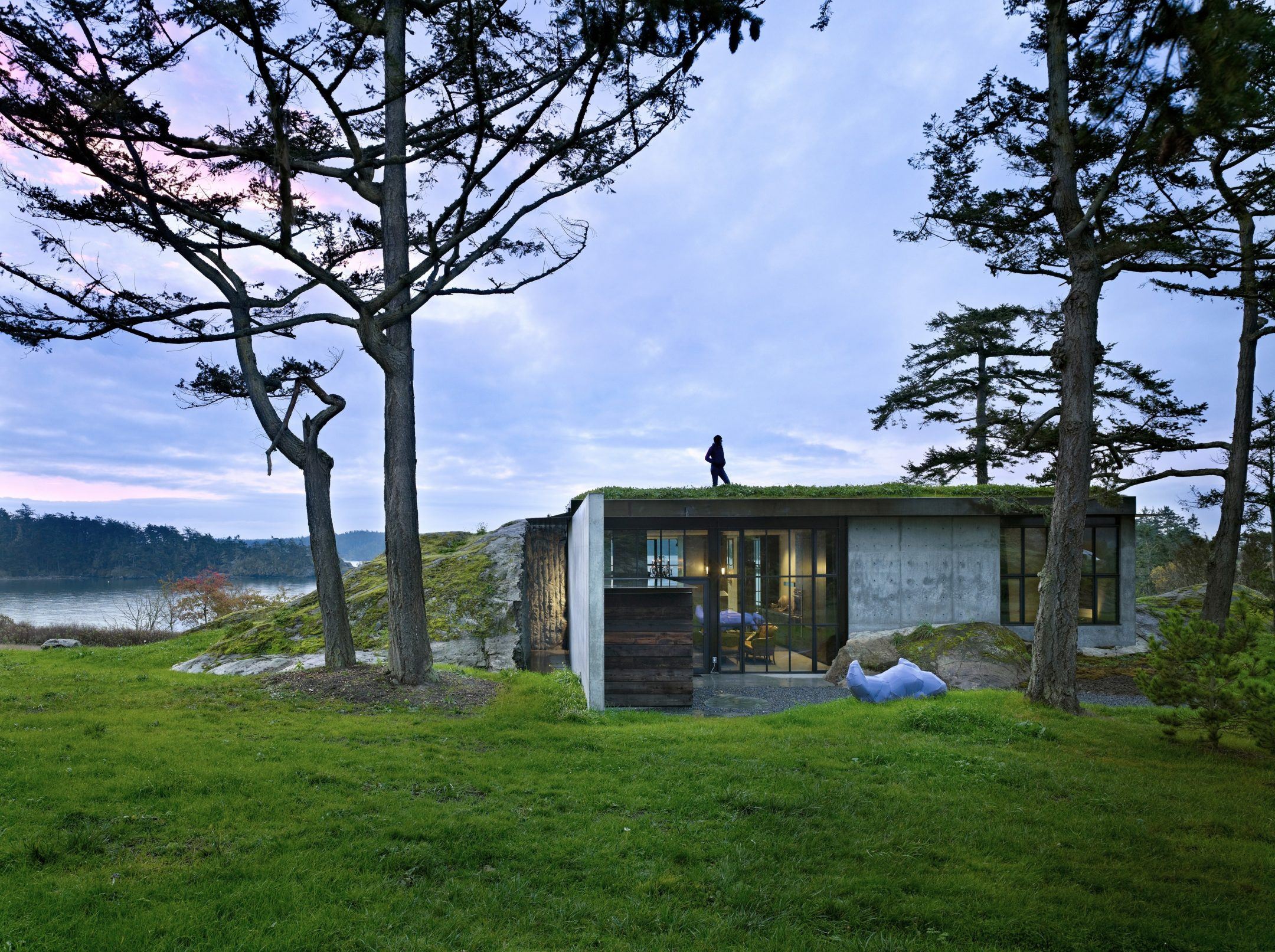 워싱턴주 산후안 아일랜드 지역에 위치한 바위와 어울어진 집입니다.