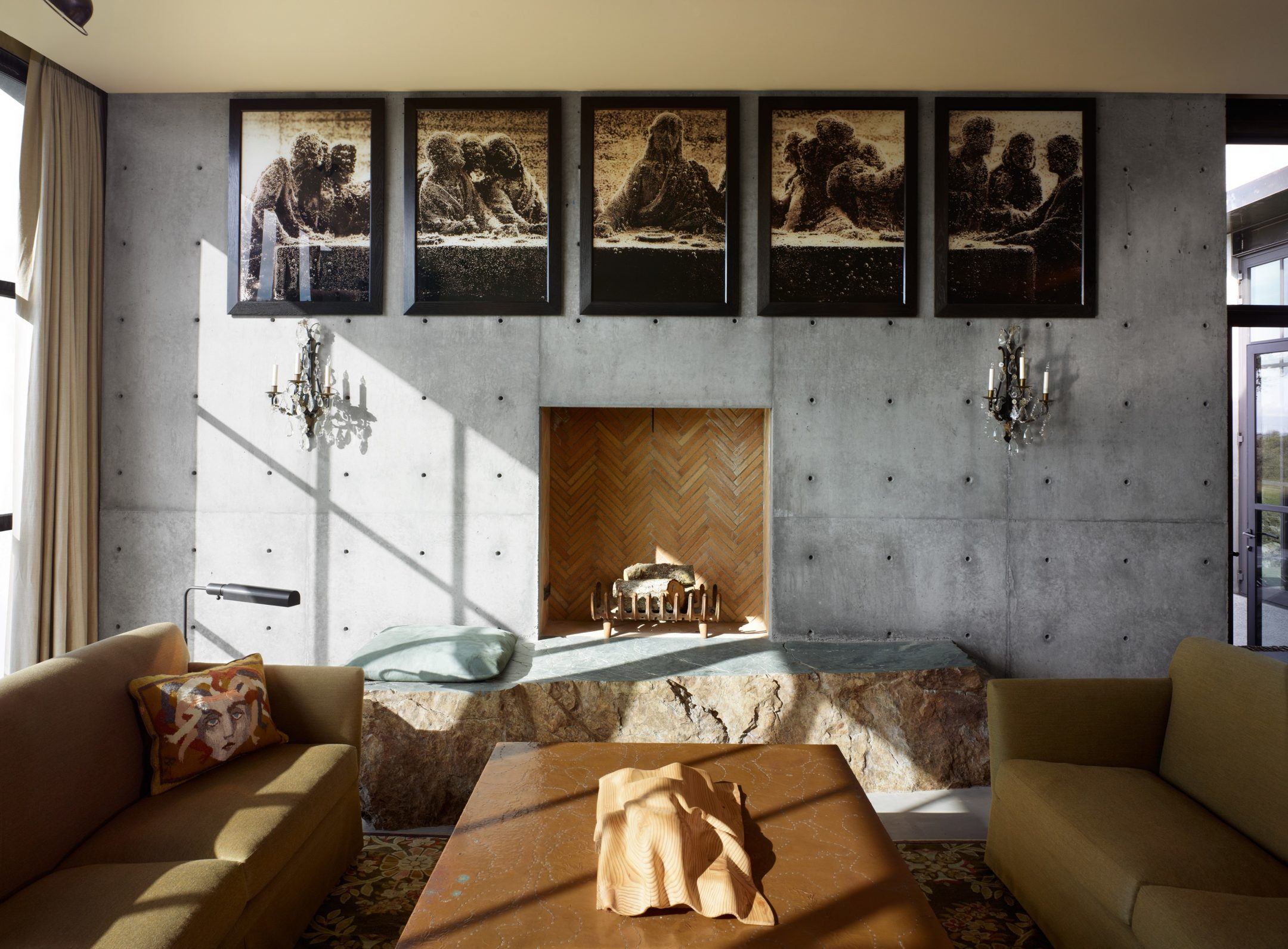 내부 인테리어 또한 바위와 어울리는 고재 및 철들을 사용하여 조화롭게 디자인 되었습니다.