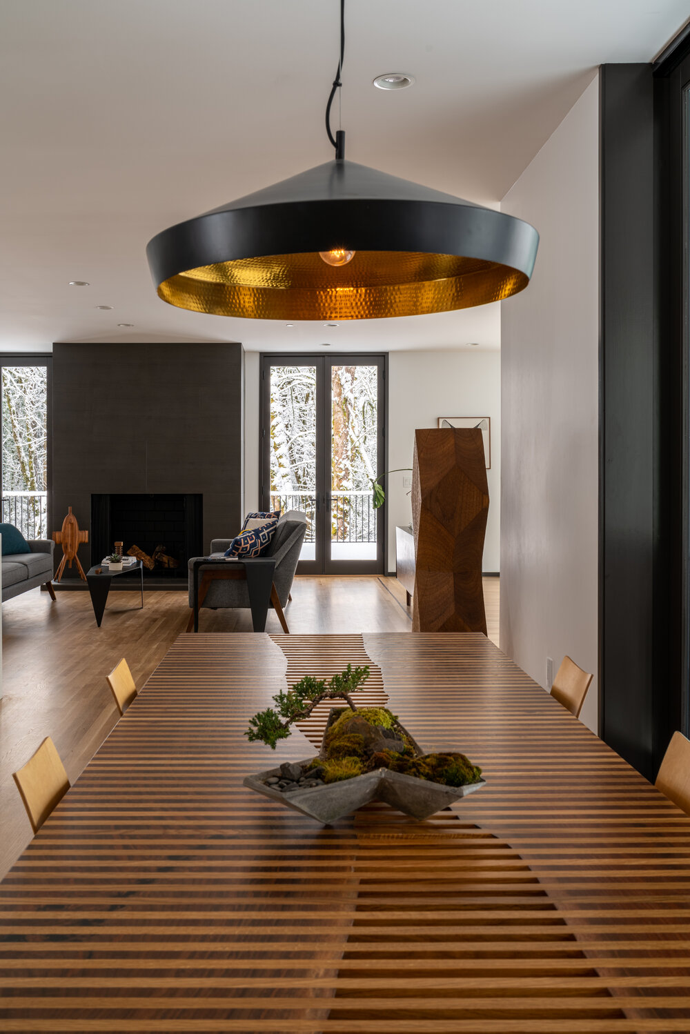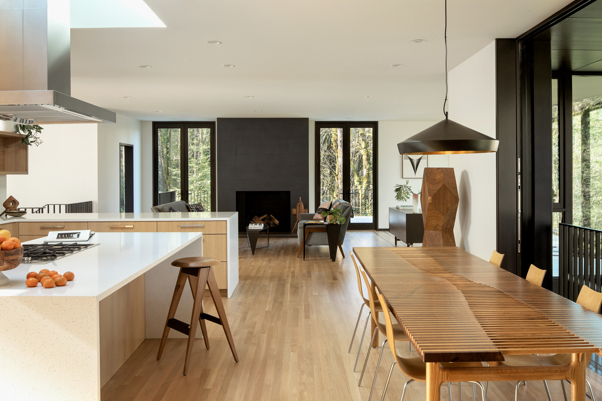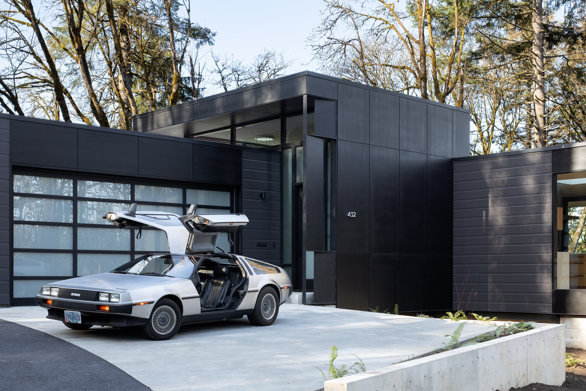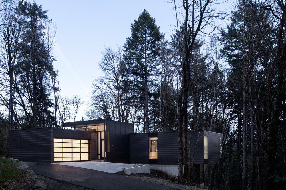 검은 외관은 숲을 많이 해치지 않으면서 자연스럽게 어울립니다.