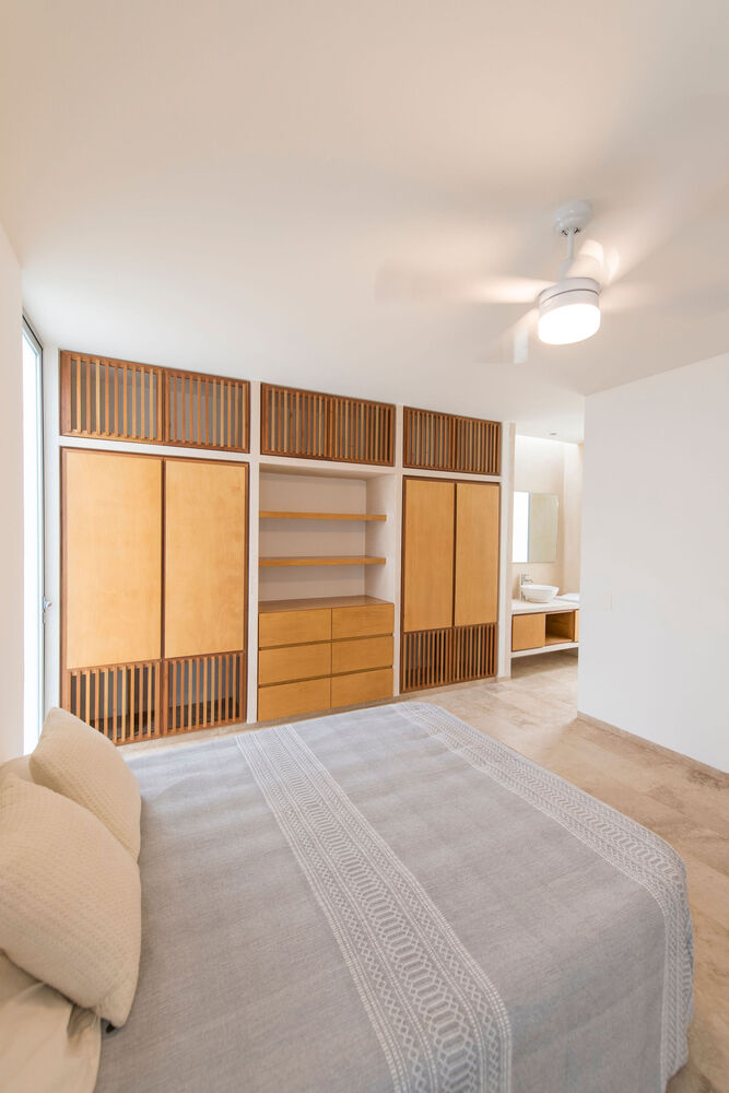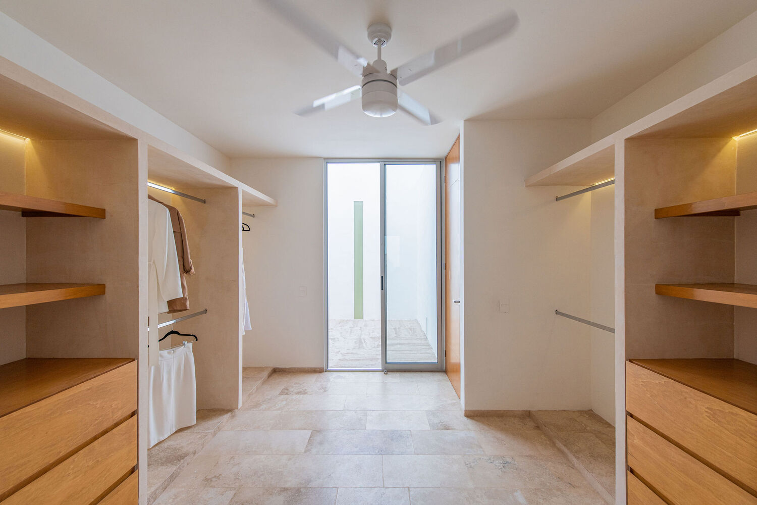 멕시코의 주거지역에 지어진 화이트 톤의 깔끔한 주택입니다.