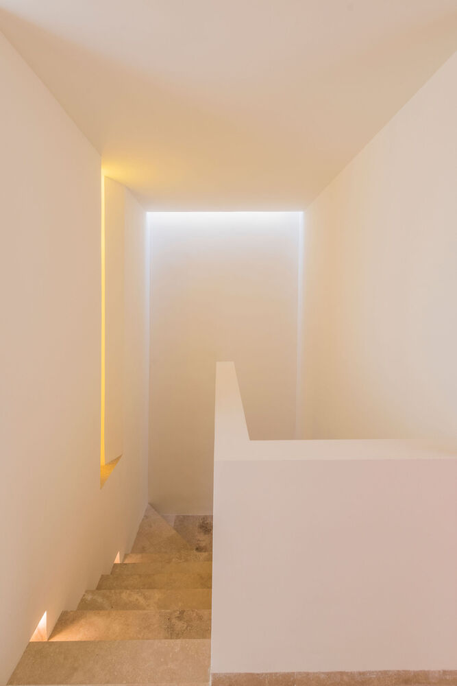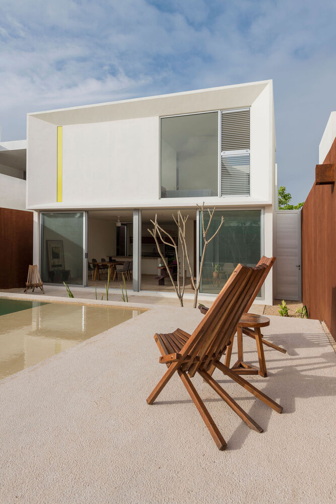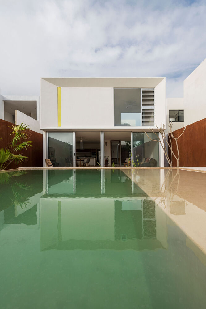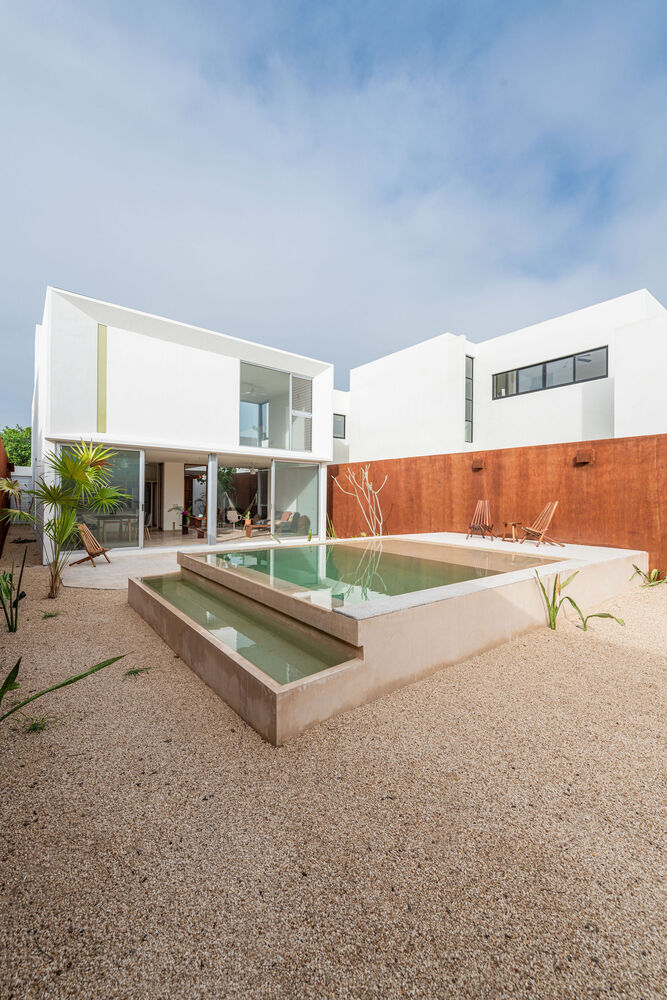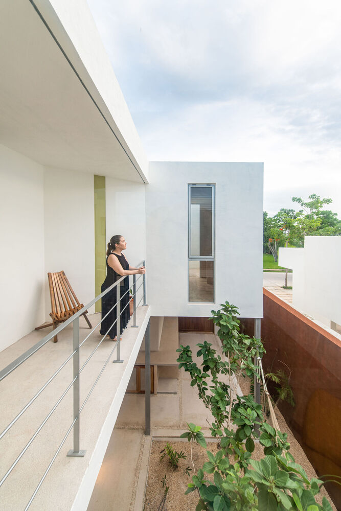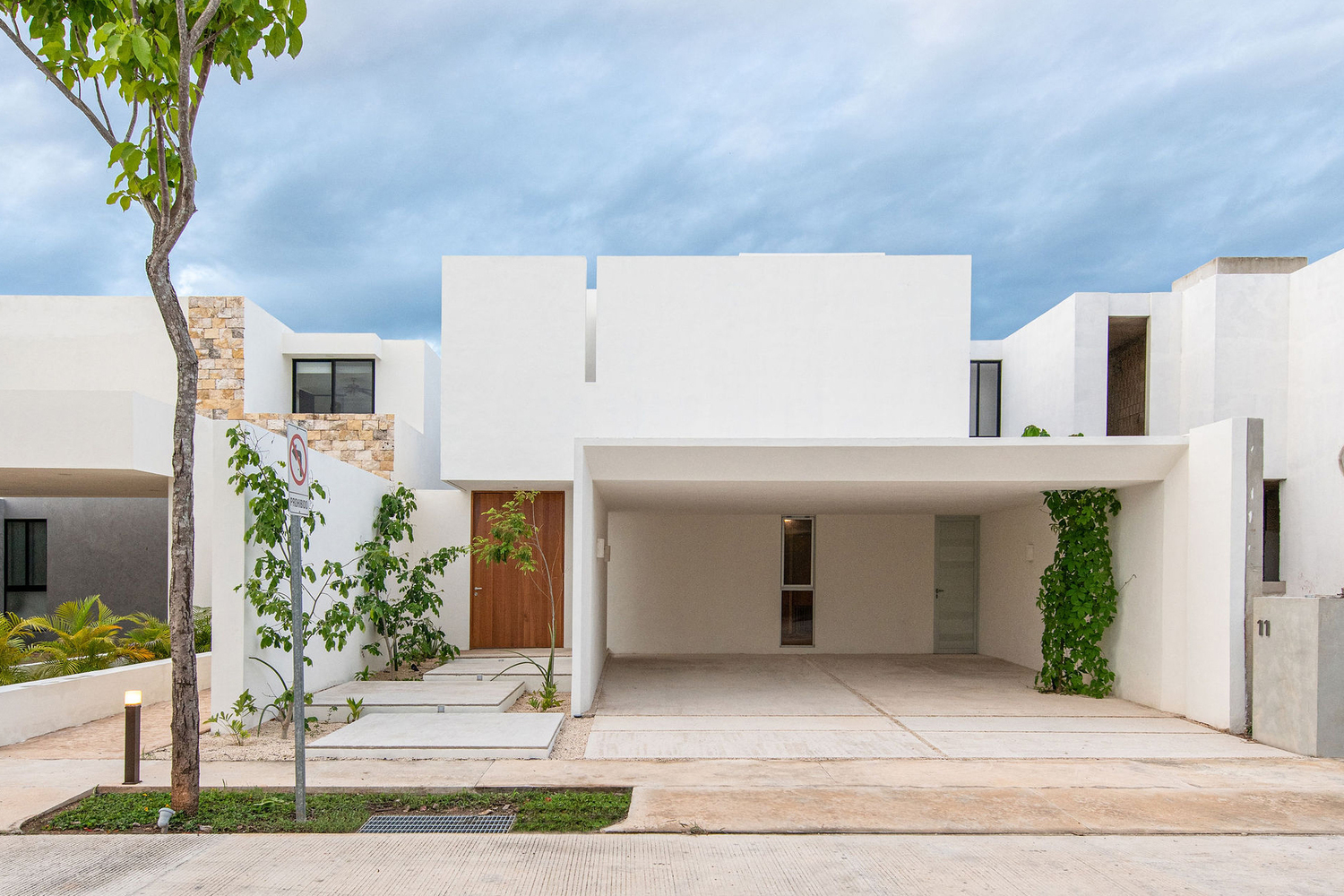 멕시코의 주거지역에 지어진 화이트 톤의 깔끔한 주택입니다.