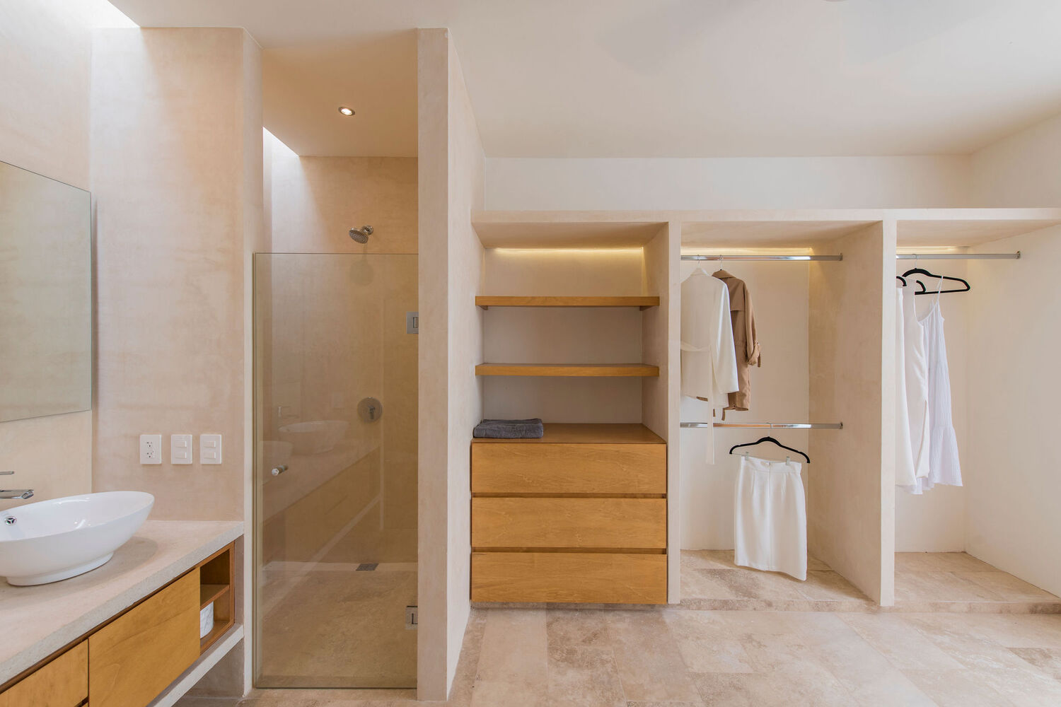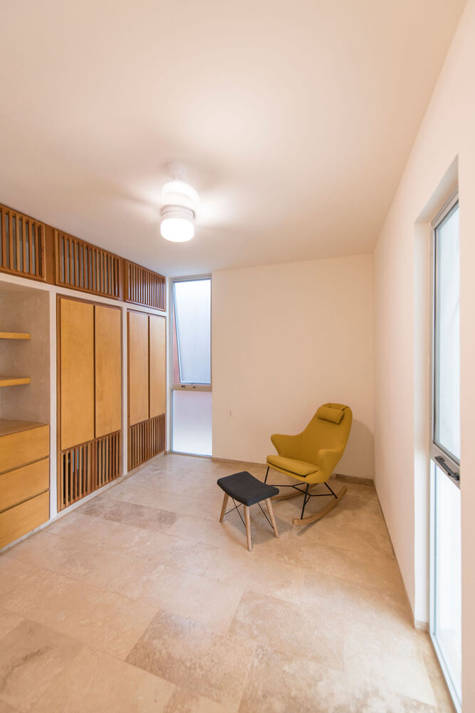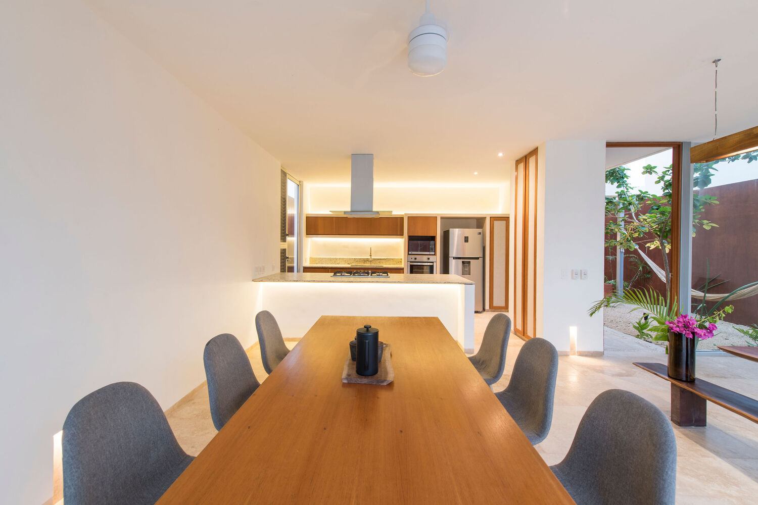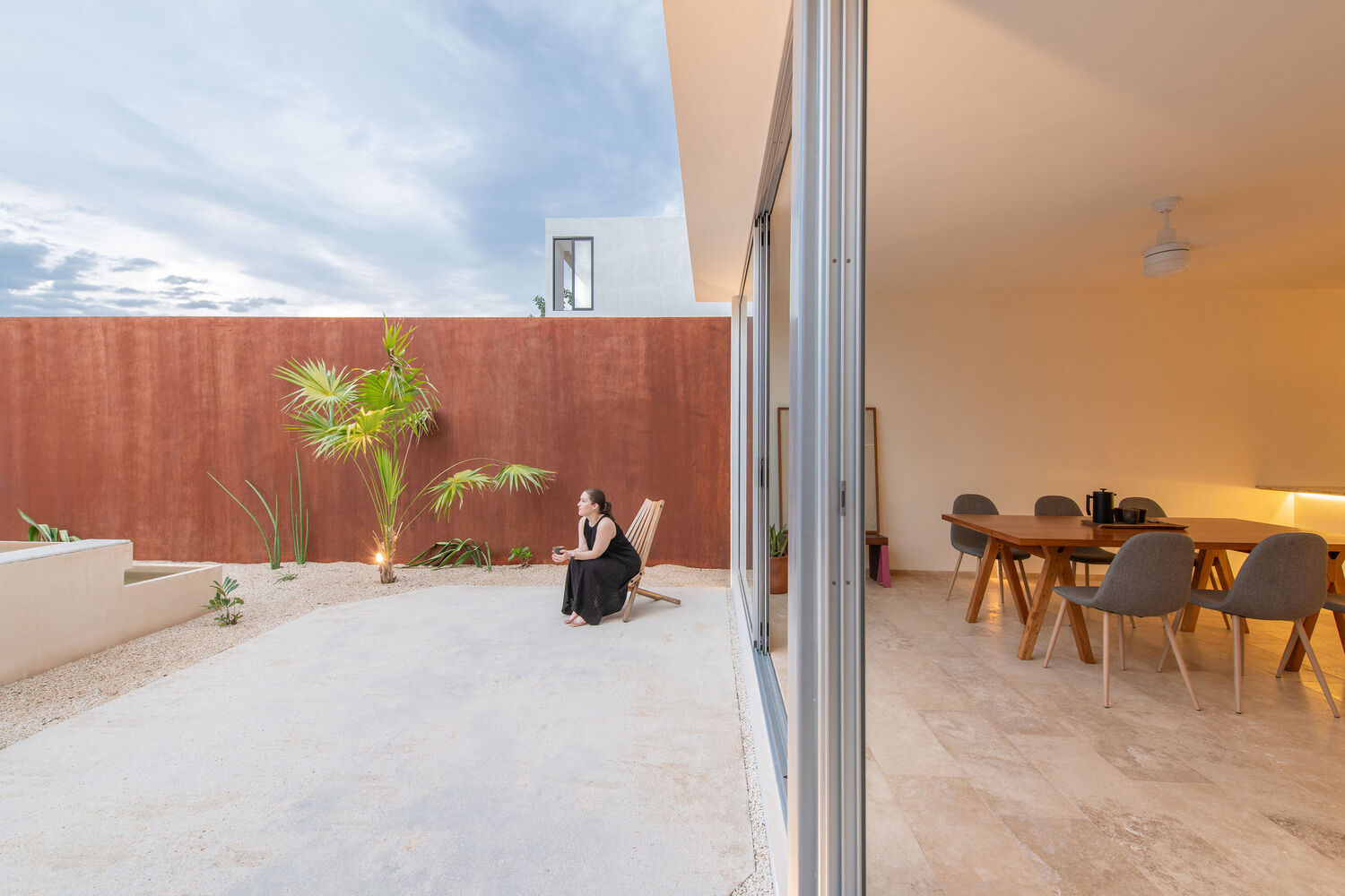 멕시코의 주거지역에 지어진 화이트 톤의 깔끔한 주택입니다.