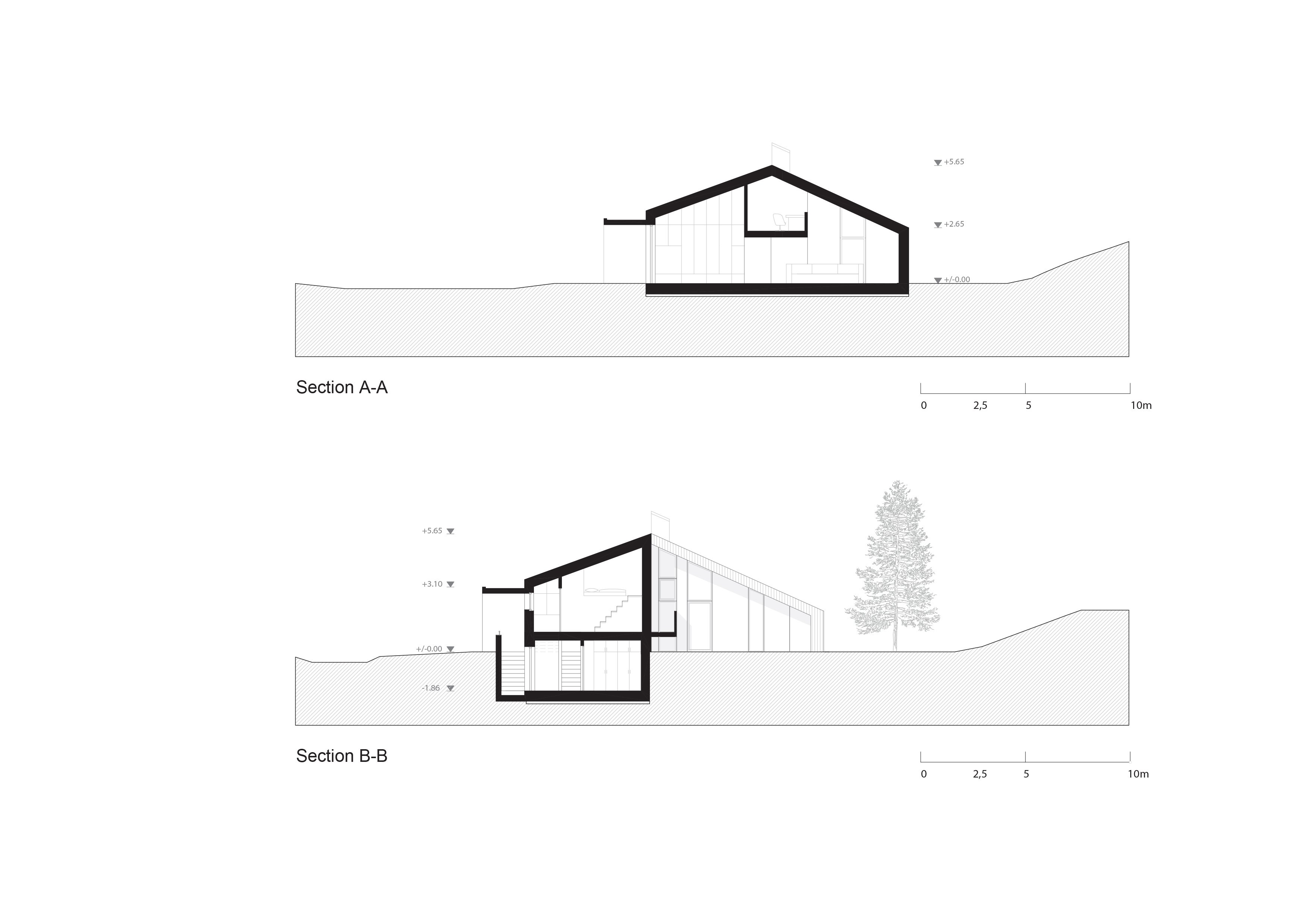대지의 중심을 전나무가 잡아주듯 주택의 외관과 내부의 주된 재료 또한 나무입니다.