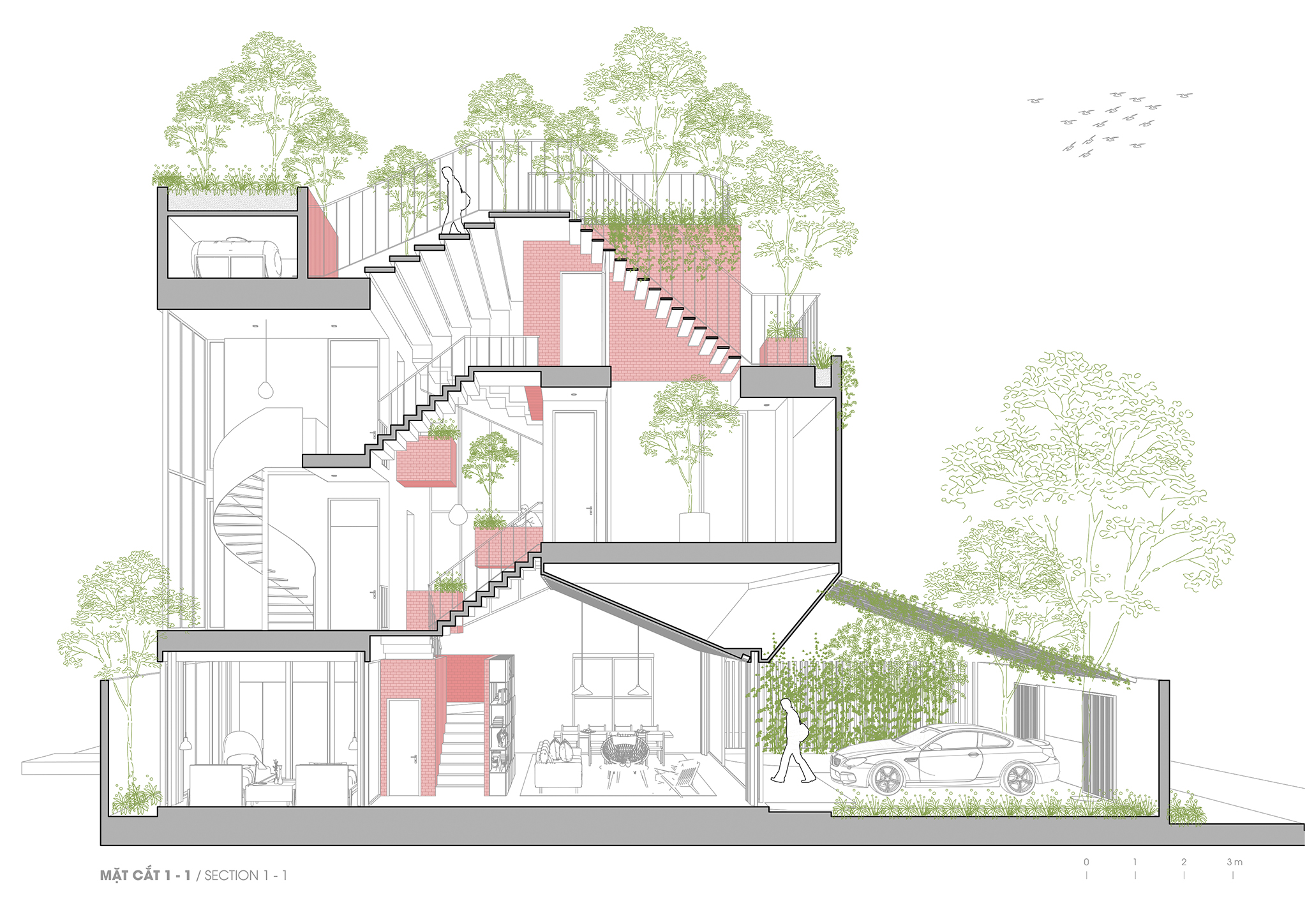 그런 집을 원했던 건축주의 희망데로 집의 옥상을 공원처럼 꾸며 놓은 베트남 주택입니다.