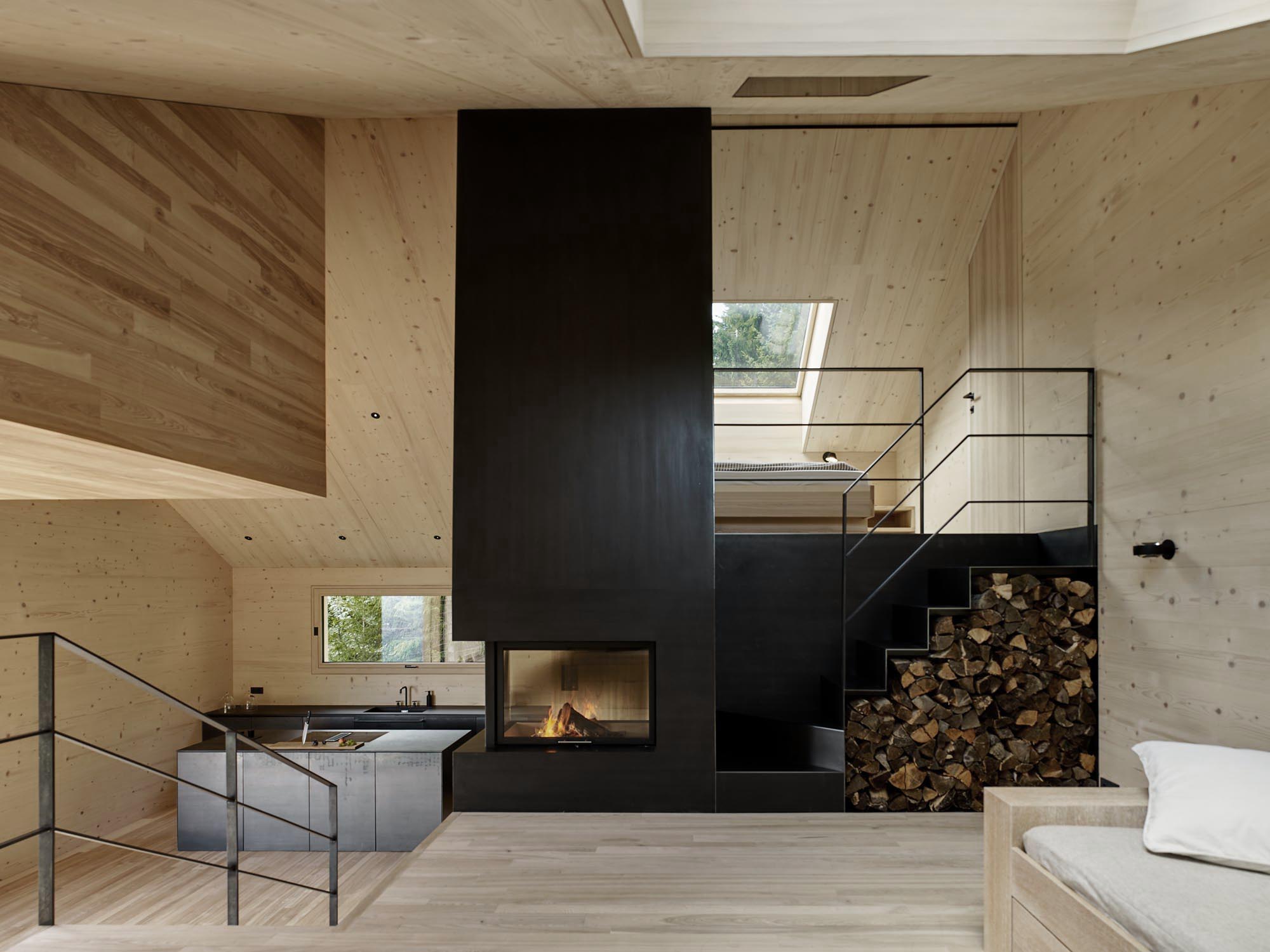 중심부의 난로와 프레임들이 포인트 컬러로 외관 색인 블랙을 사용해 일관성을 유지해줍니다.