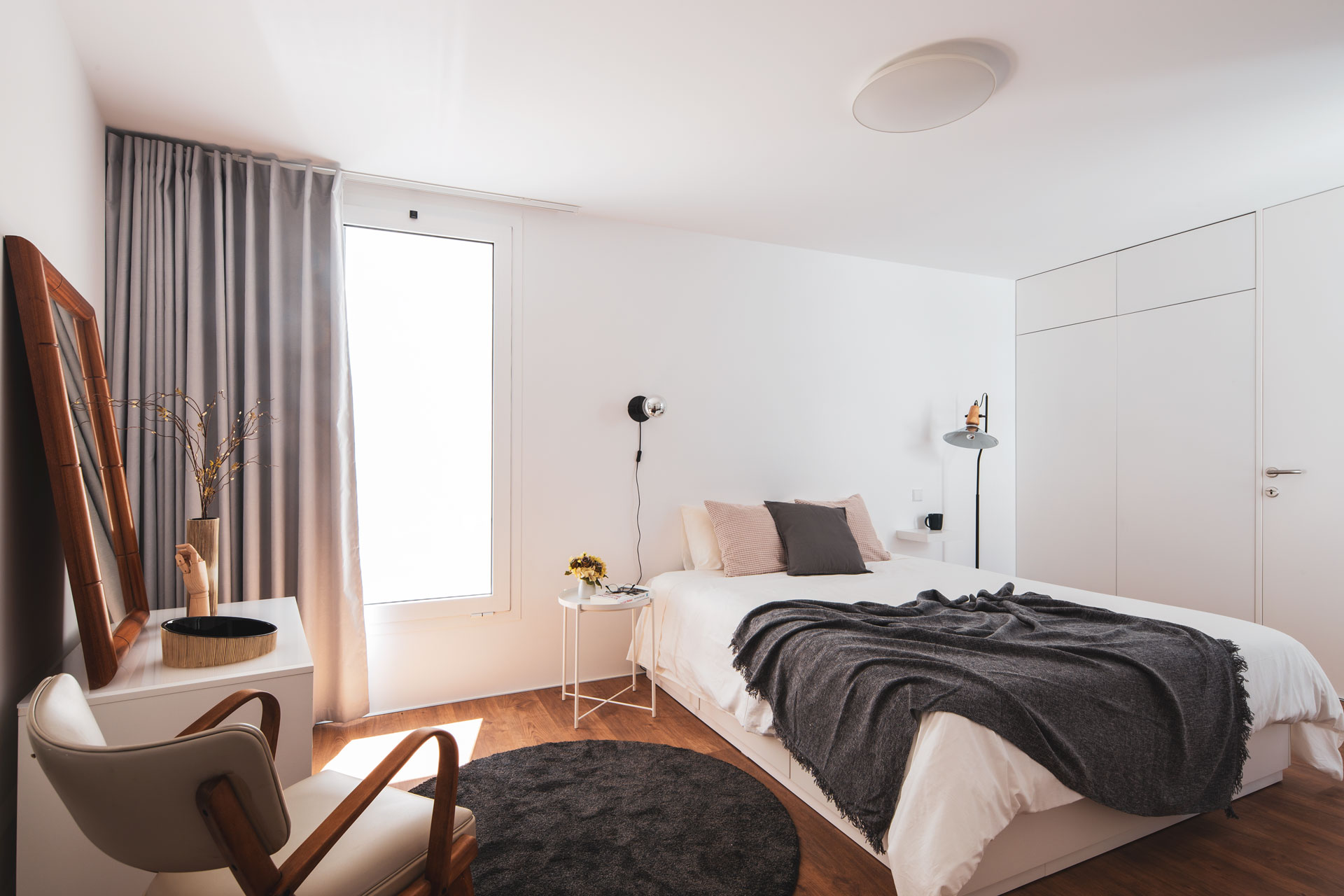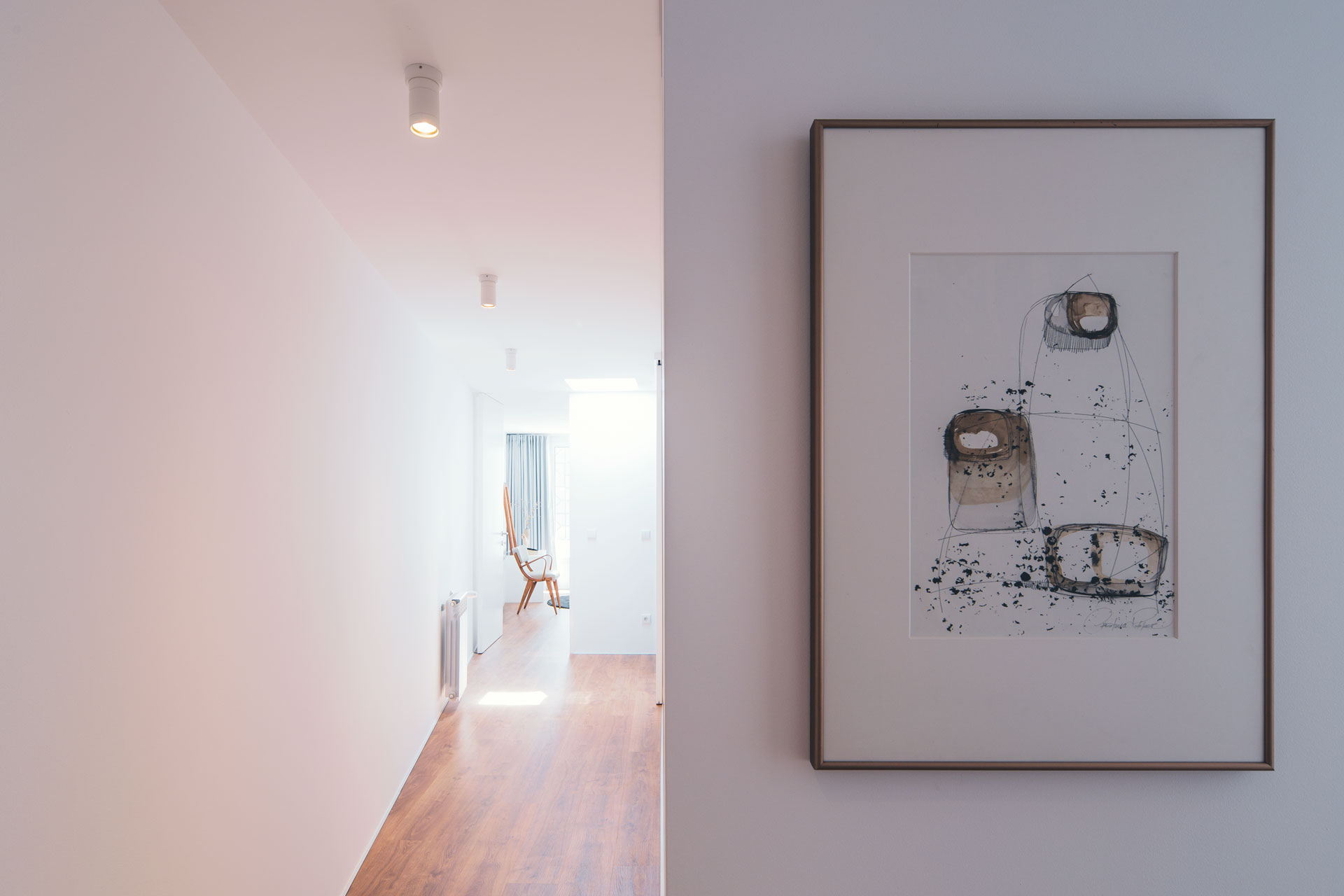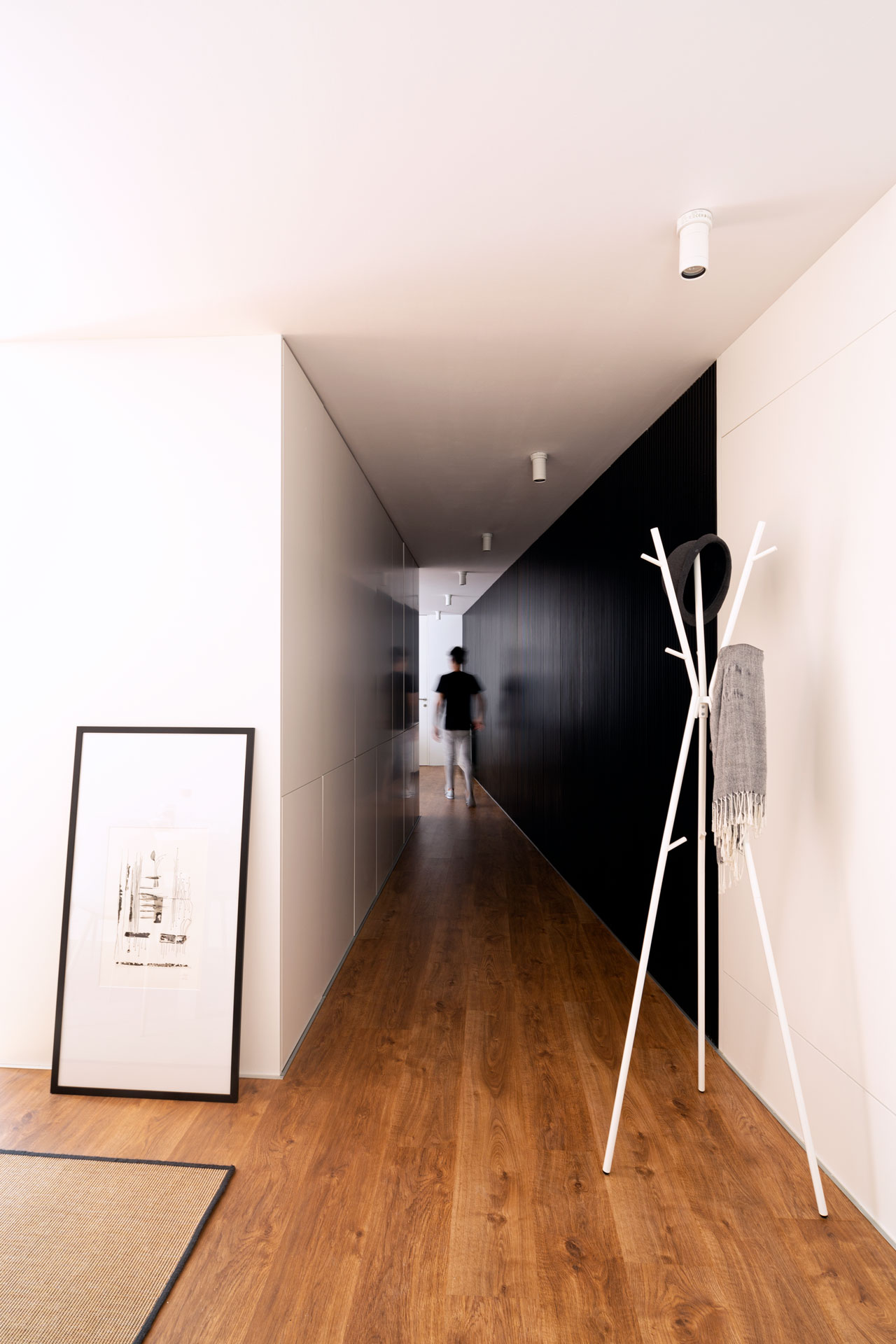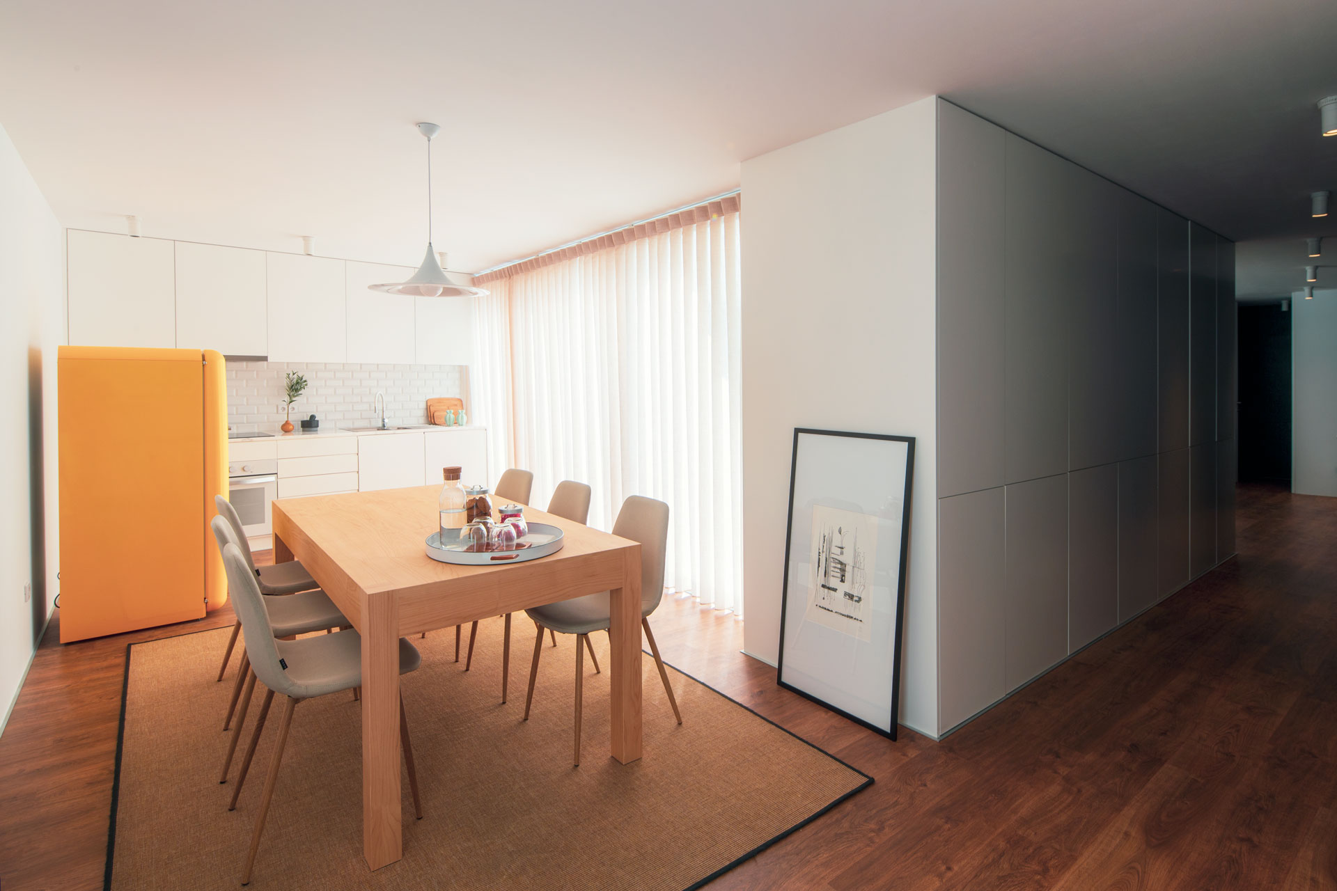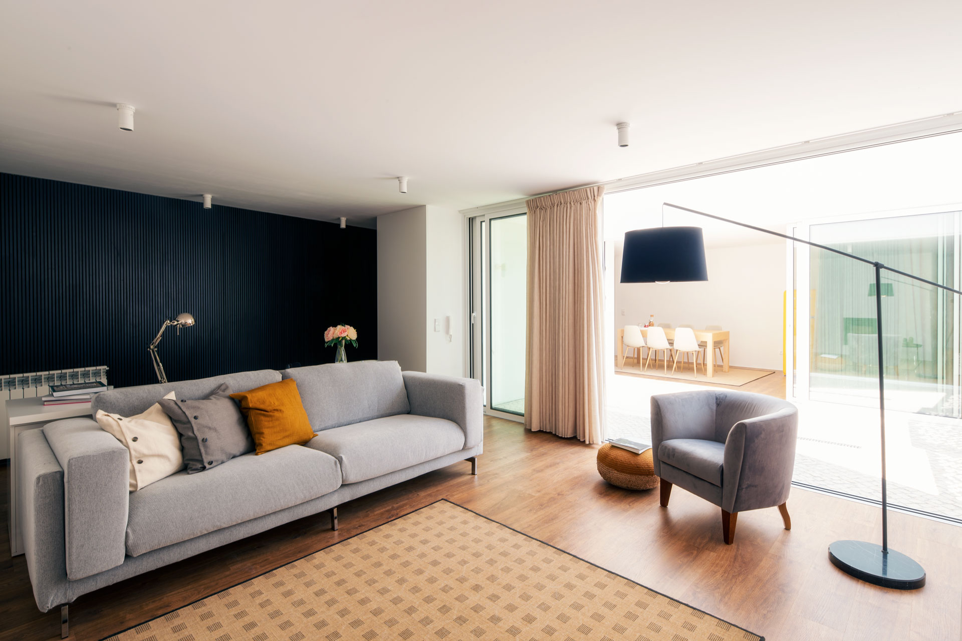 붉은 기와 지붕들이 빼곡히 들어선 포르투갈 소도시 중심가에 위치한 화이트 톤의 모던 주택입니다.