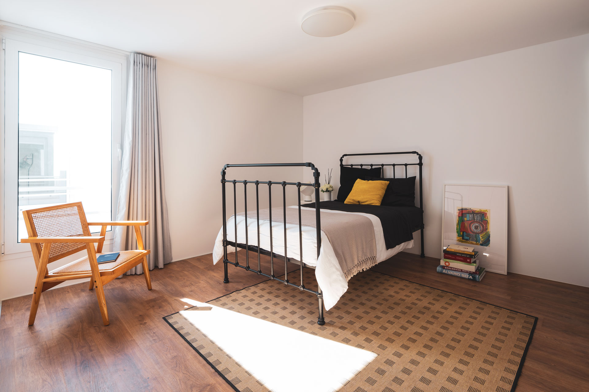 집 외관과 같이 내부 인테리어도 화이트 톤이며 바닥을 나무로 깔고 곳곳에 나무 가구를 두어