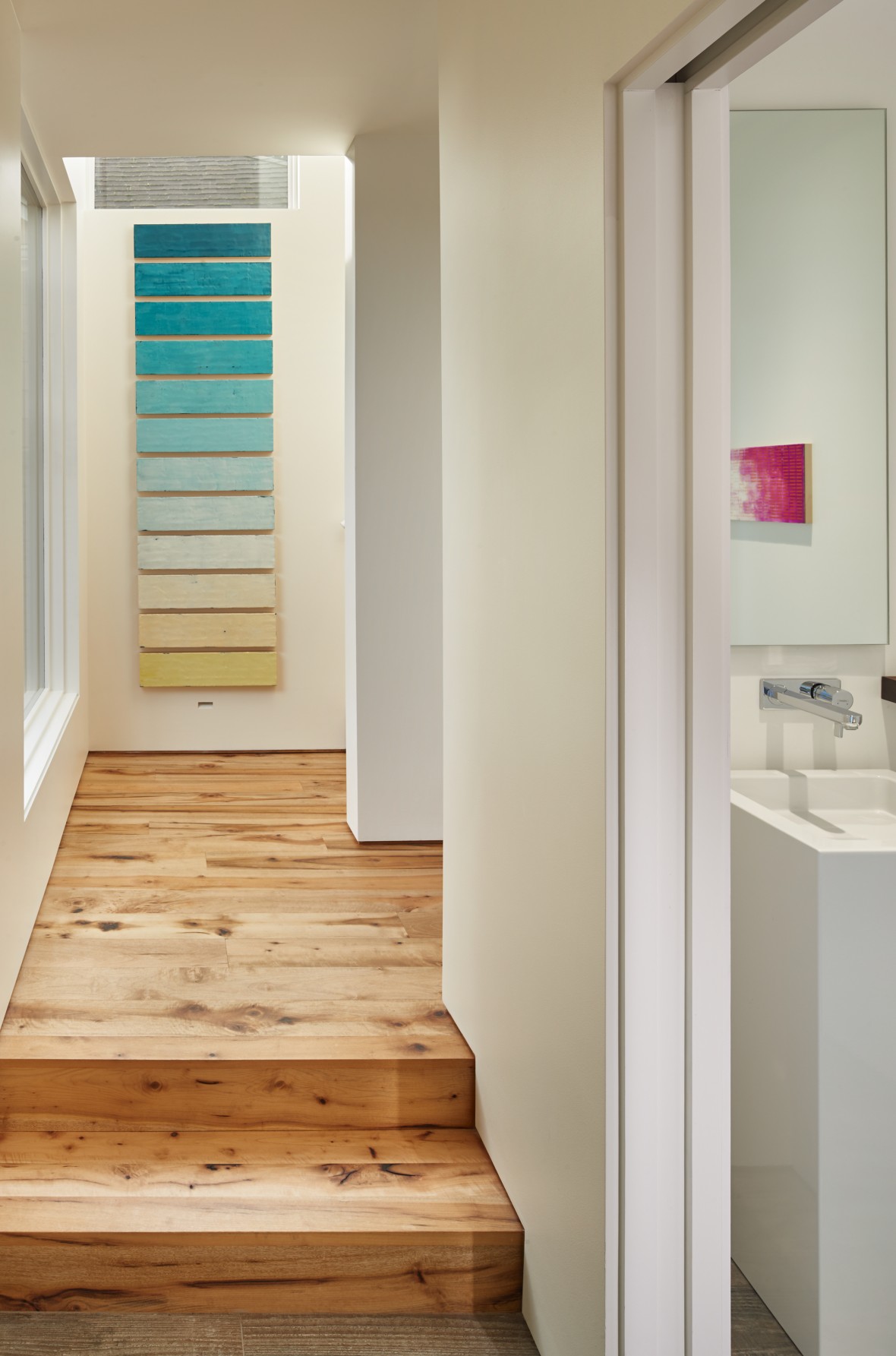 그보다 반층 밑으로 스튜디오 공간이 자리하고 있으며 반층 위로는 게스트 룸이 있습니다.
