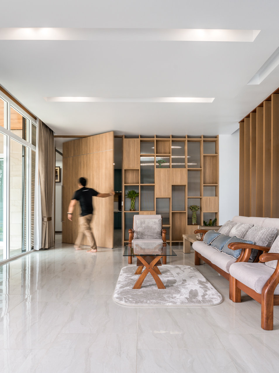 외부인 출입이 많은 가족의 특성상 1층에는 거실 주방 식당등 공용공간 위주로 설계되었고