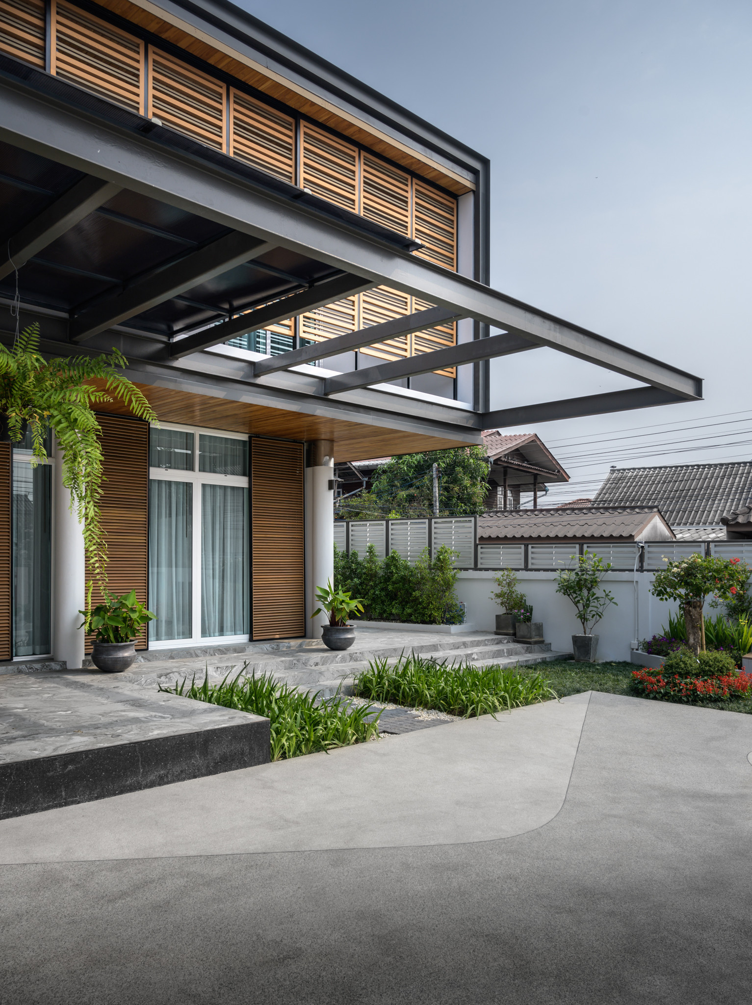 또한 2층에 집과 완충작용이 가능한 돌출된 발코니를 만들어 1층에는 그늘 공간을