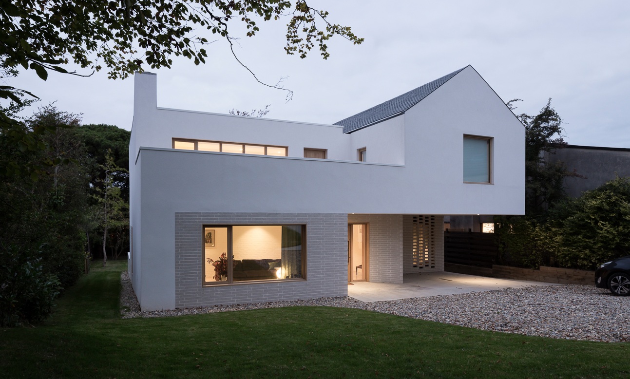 더블린 외곽의 던드럼에 지어진 백색의 깔끔한 주택입니다.