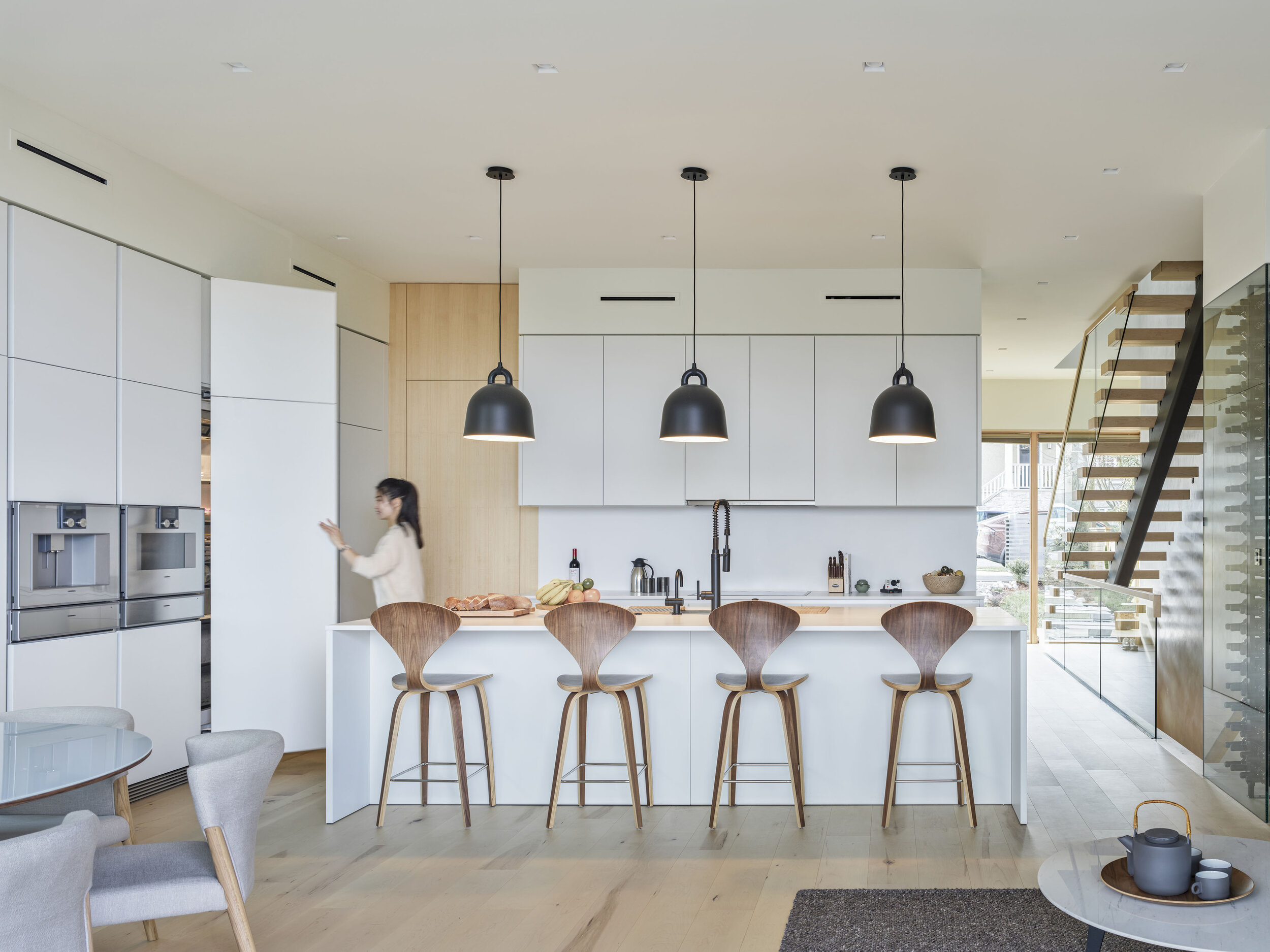 정원쪽에 큰 창들을 통해 밝고 채광이 좋은 집이 완성되었습니다.