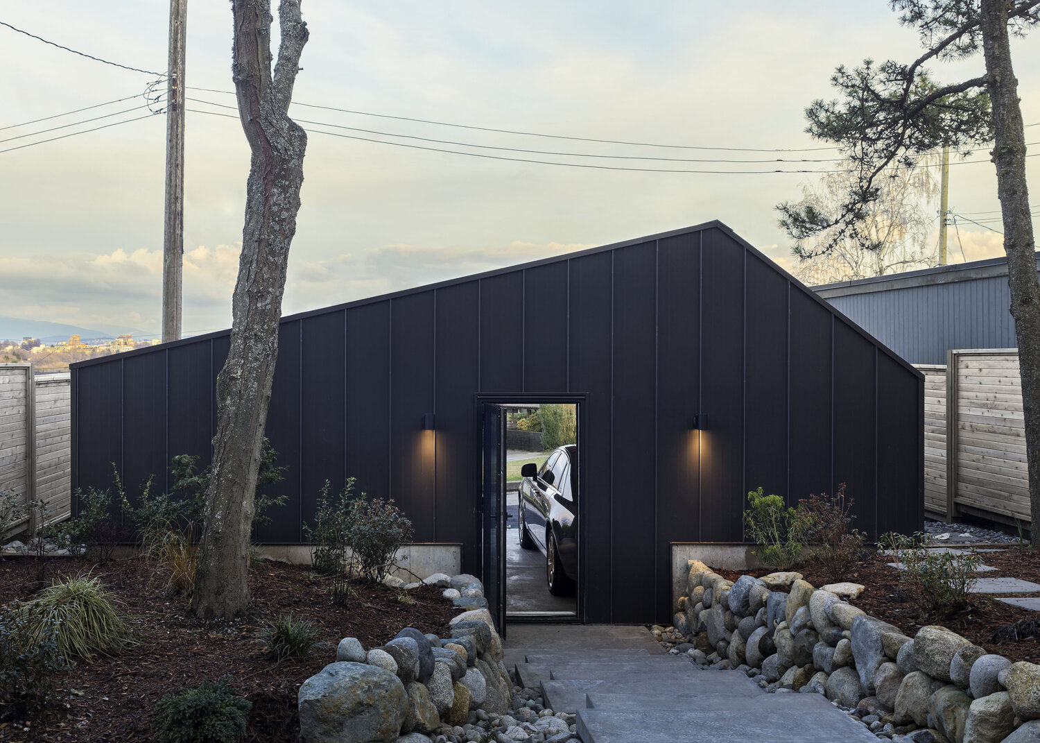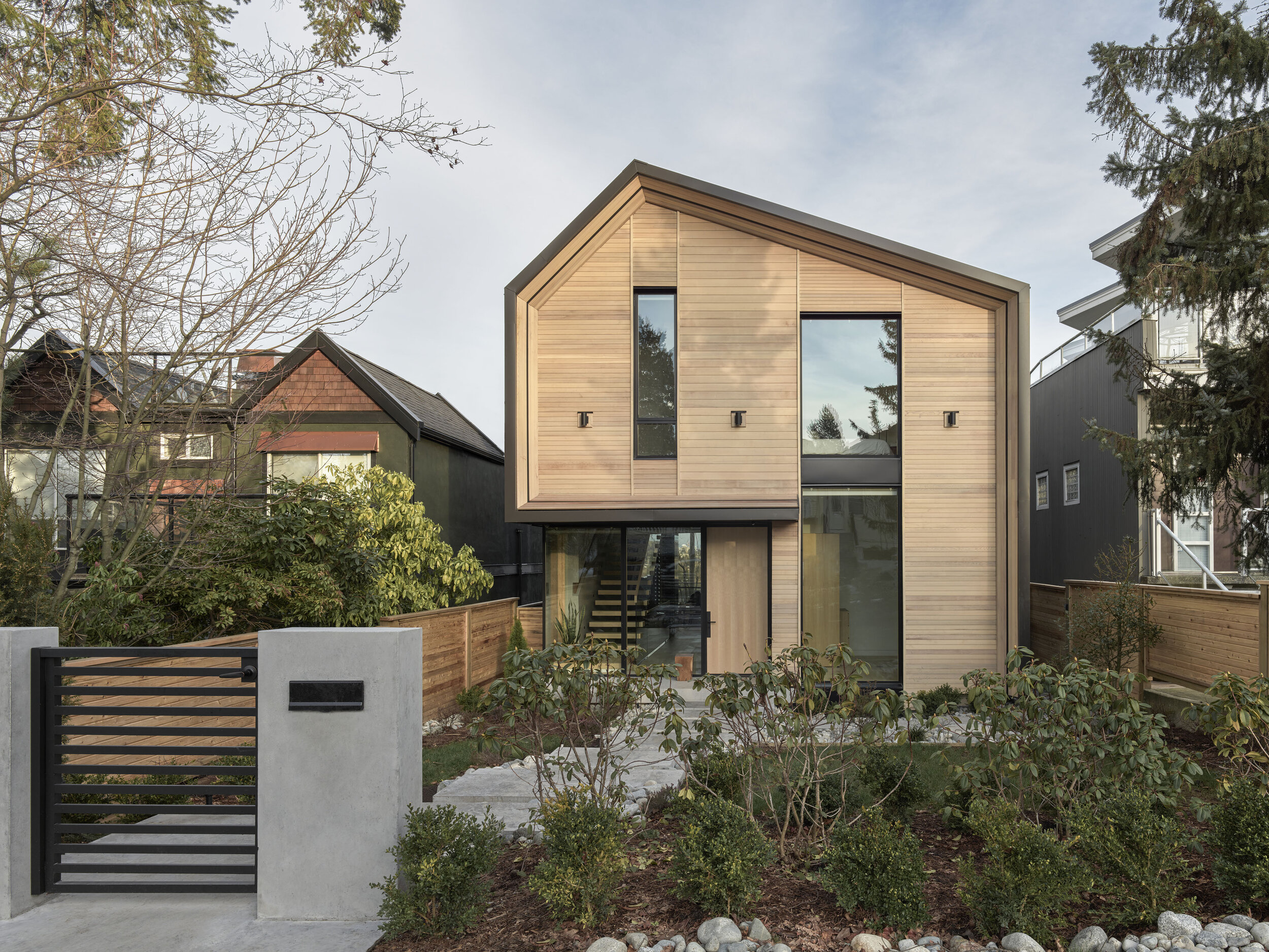비대칭적인 박공지북이 매력적인 이 집은 다양한 질감과 재료가