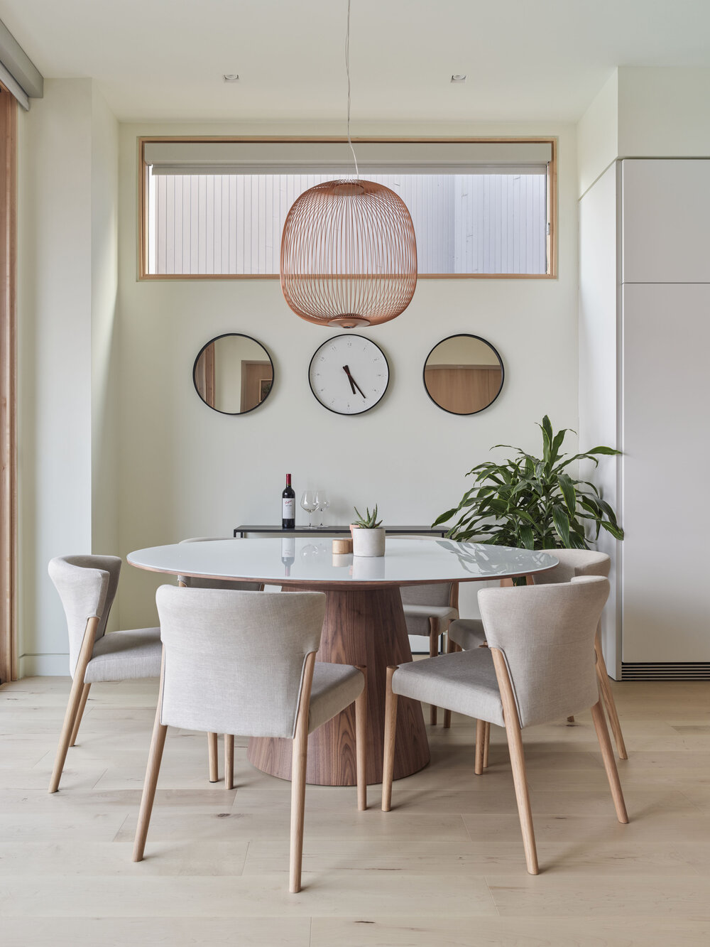 집의 내부와 외부가 전체적으로 밝은 톤으로 마감되었고 집의 외관 경계를