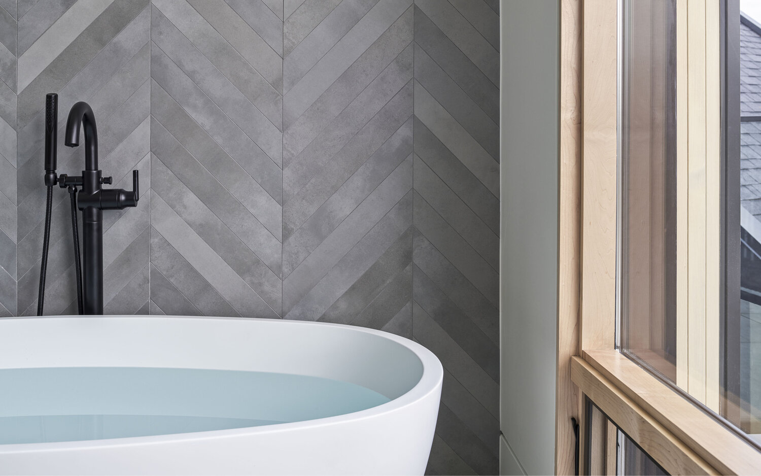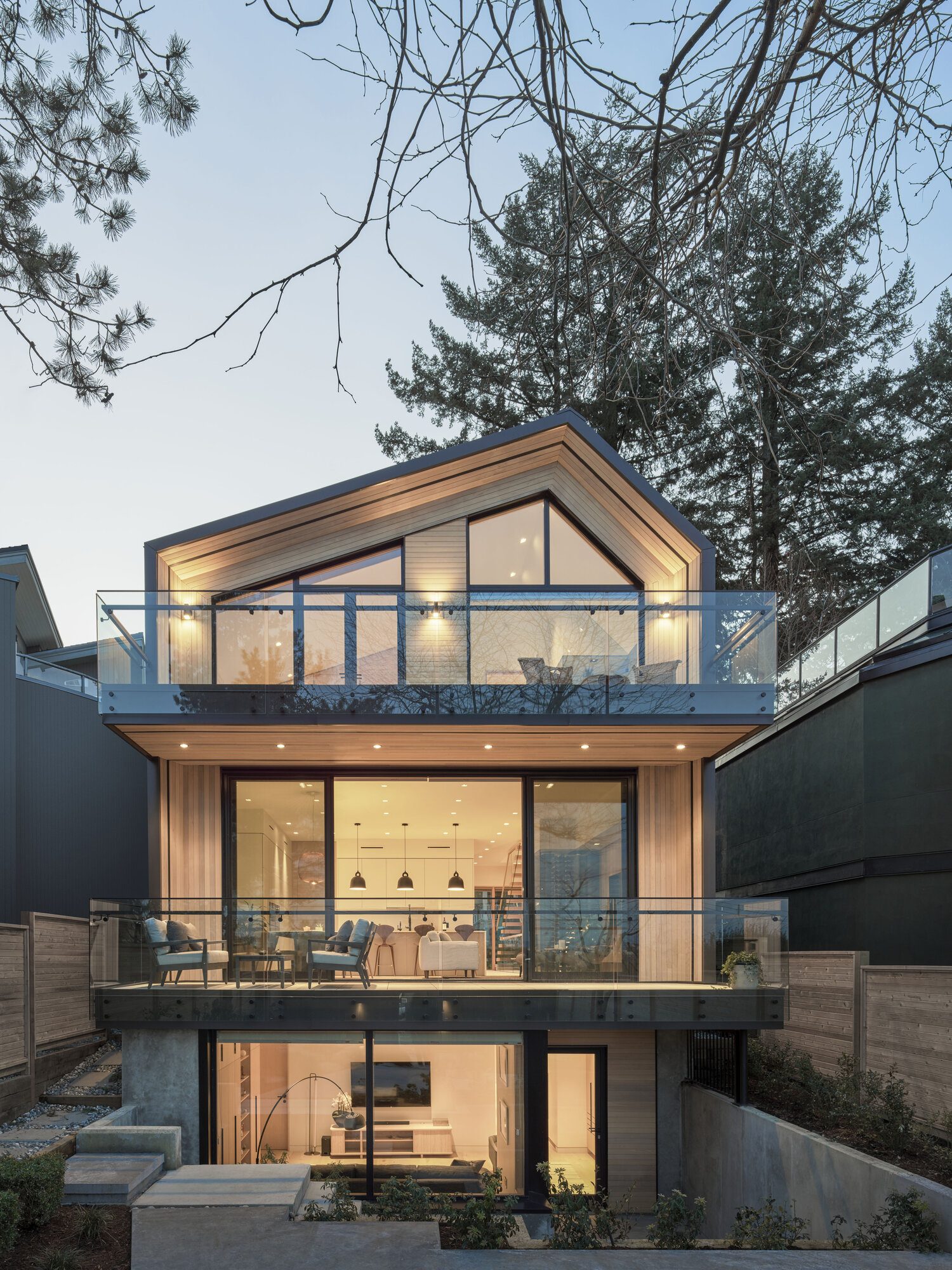 비대칭적인 박공지북이 매력적인 이 집은 다양한 질감과 재료가