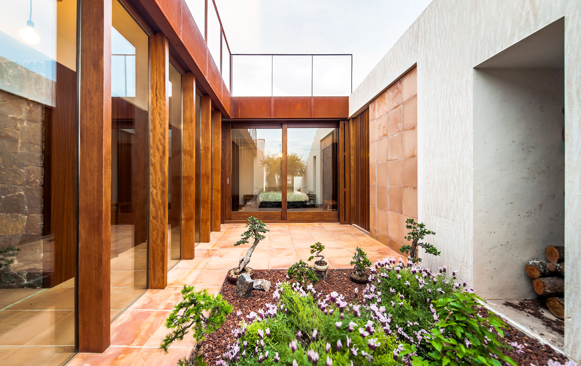 그래서 지붕을 정원으로 활용할 수 있었으며, 마당에는 수영장을 갖추고 있습니다.