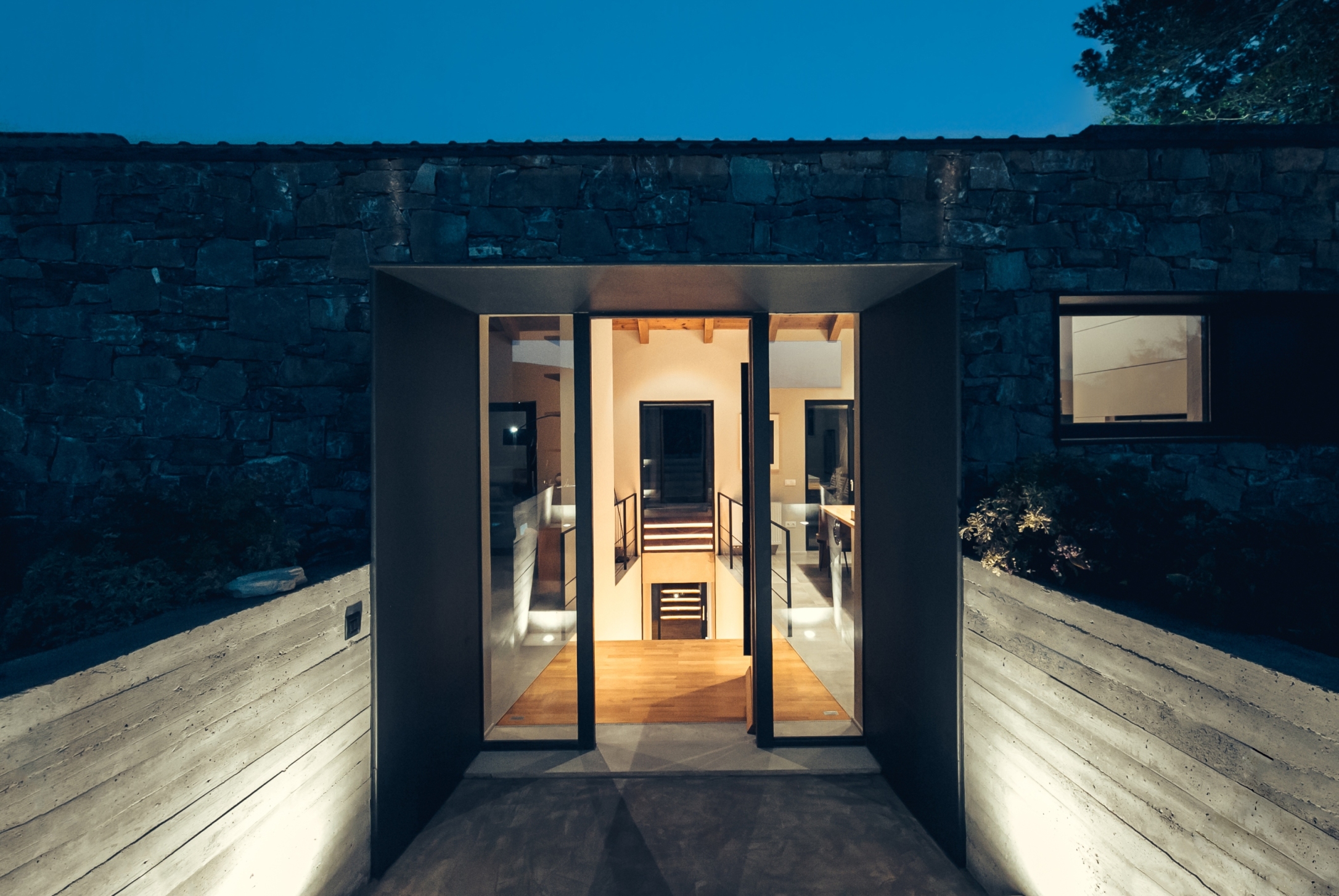 외부 석재 마감도 자연과 하나가 된듯한 느낌이 들기 때문에 친환경적인 느낌의 디자인이 적용되었고