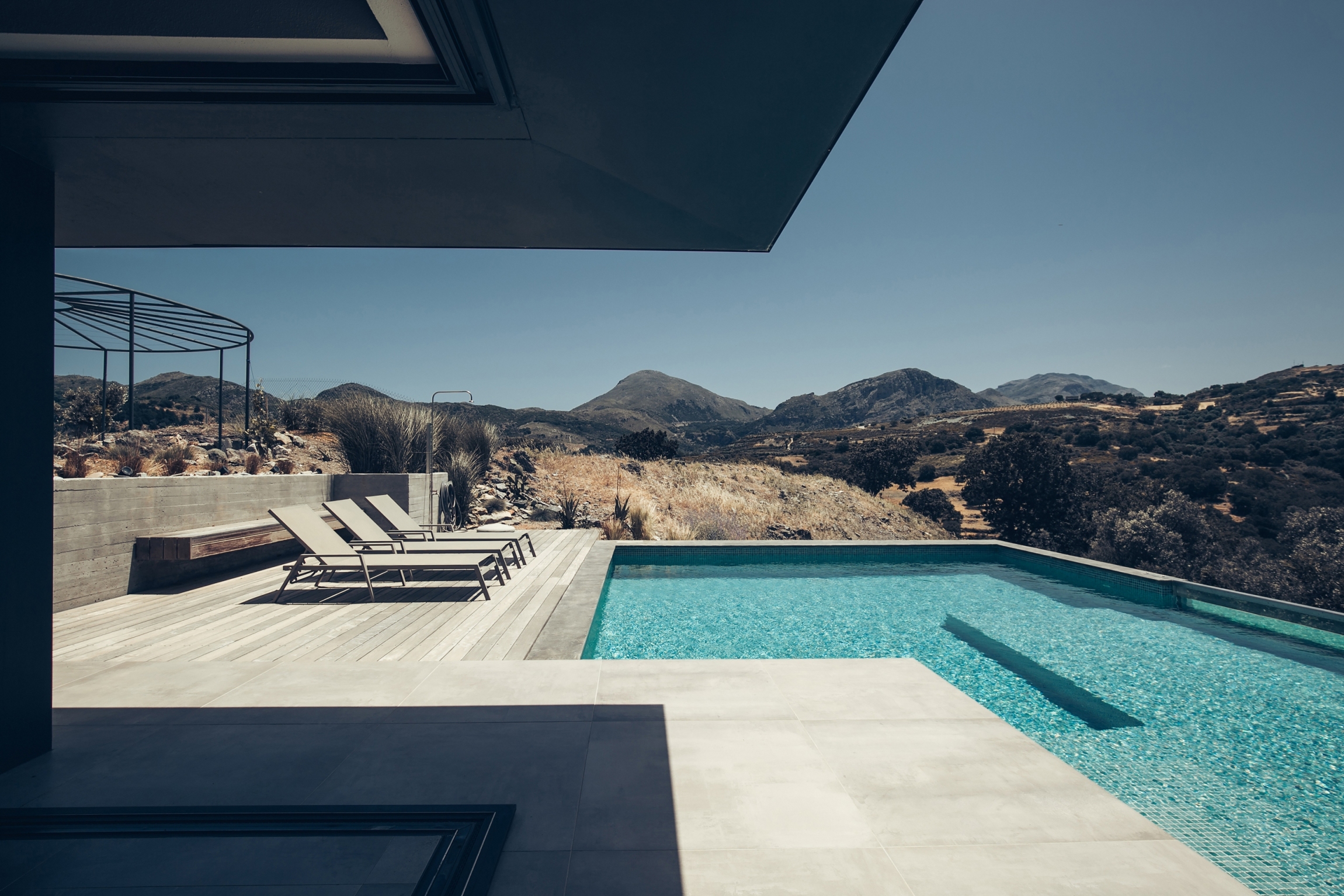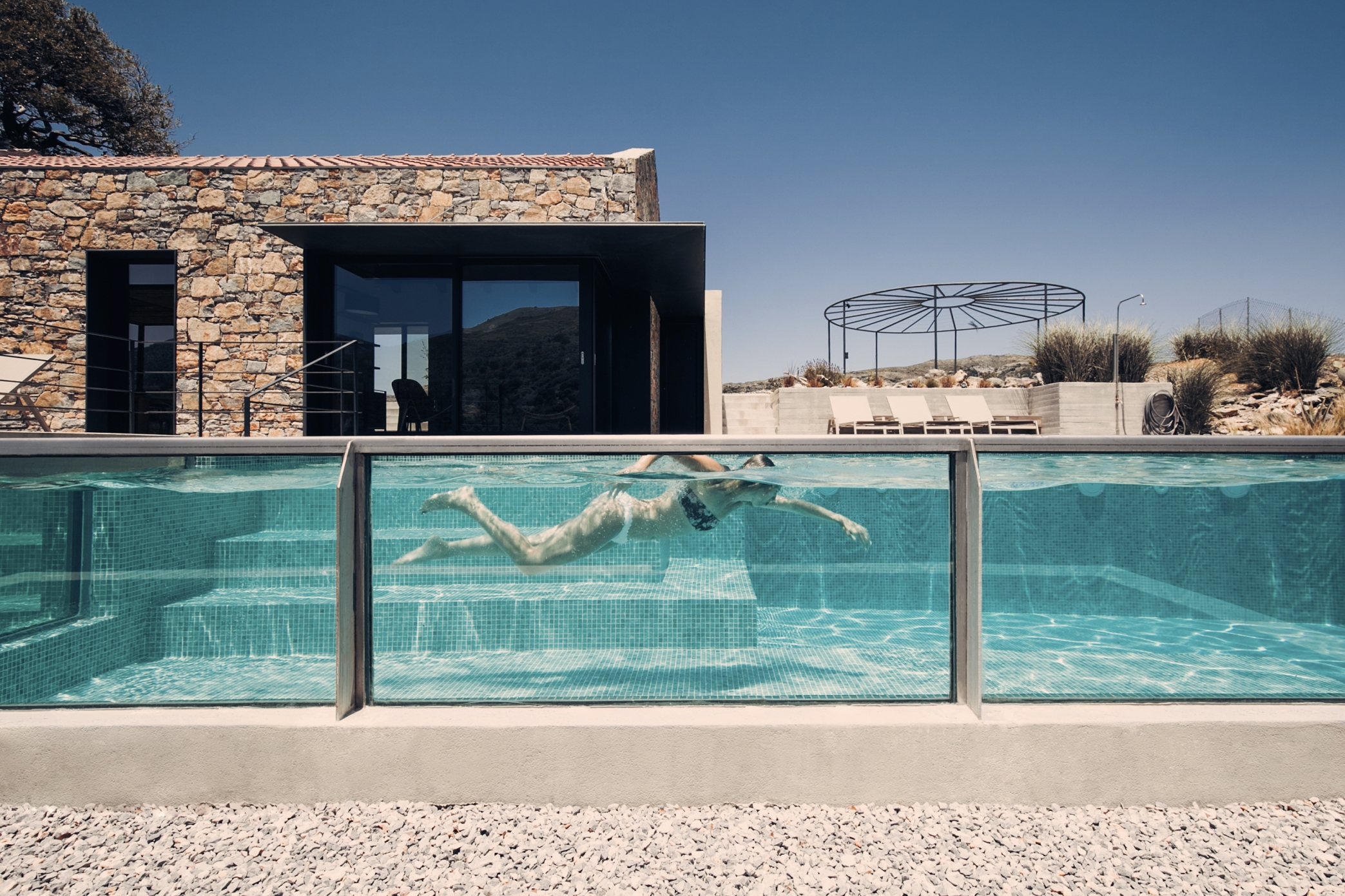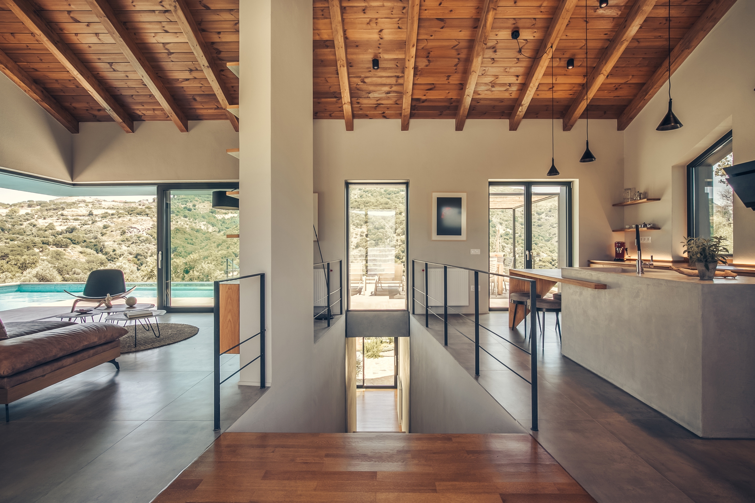 수영장은 일부가 침실의 위층에 겹쳐있는데 이는 태양열을 흡수하고 조절하는 기능도 병행합니다.