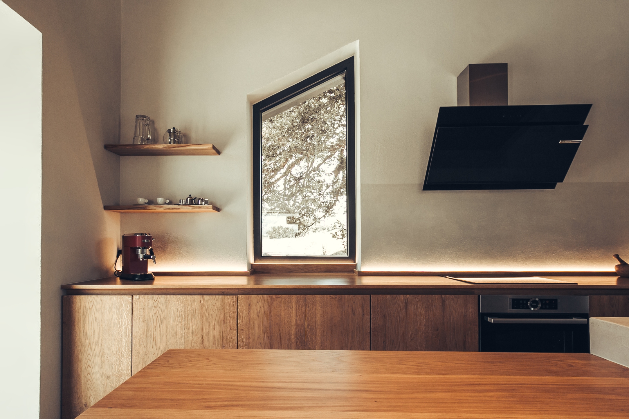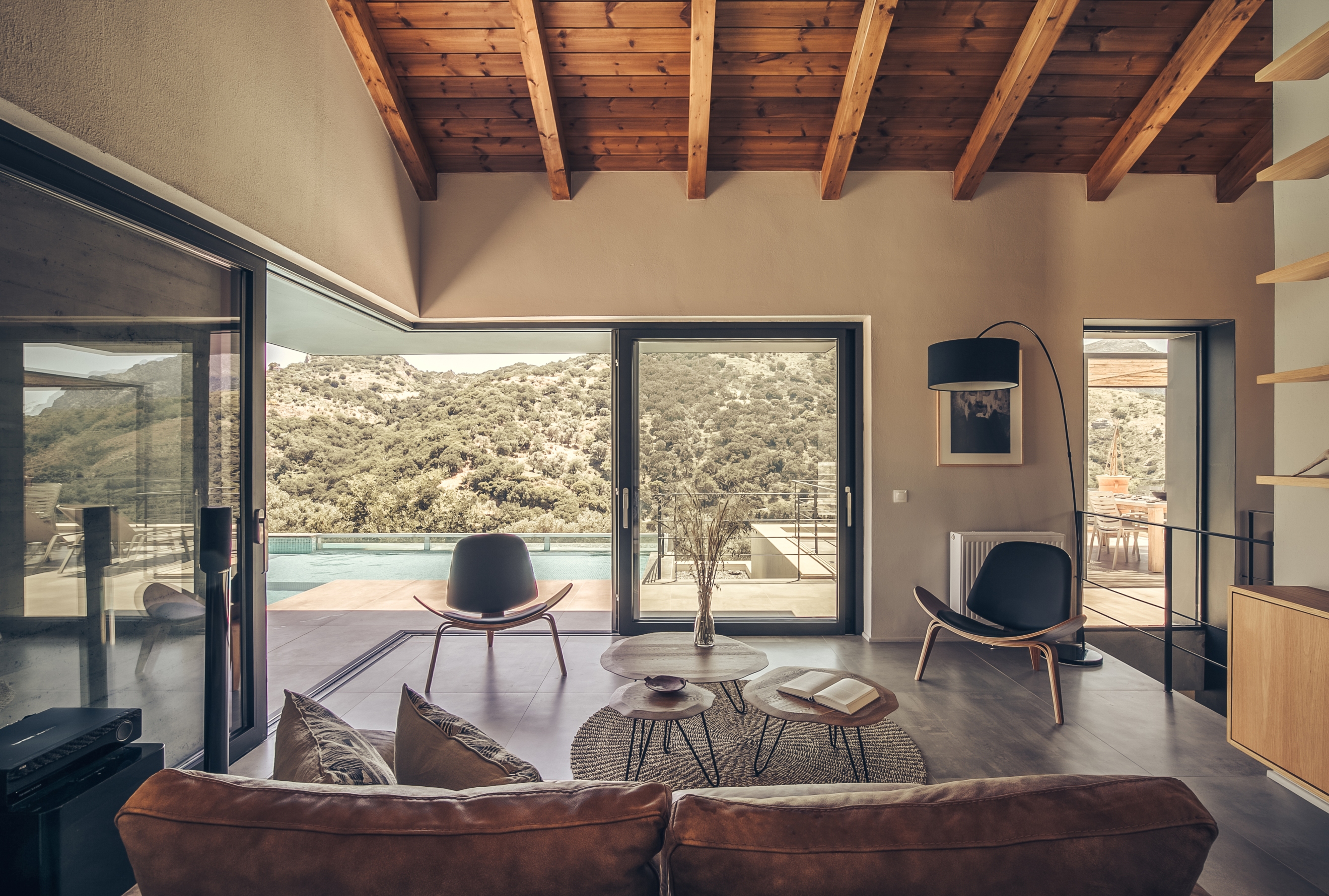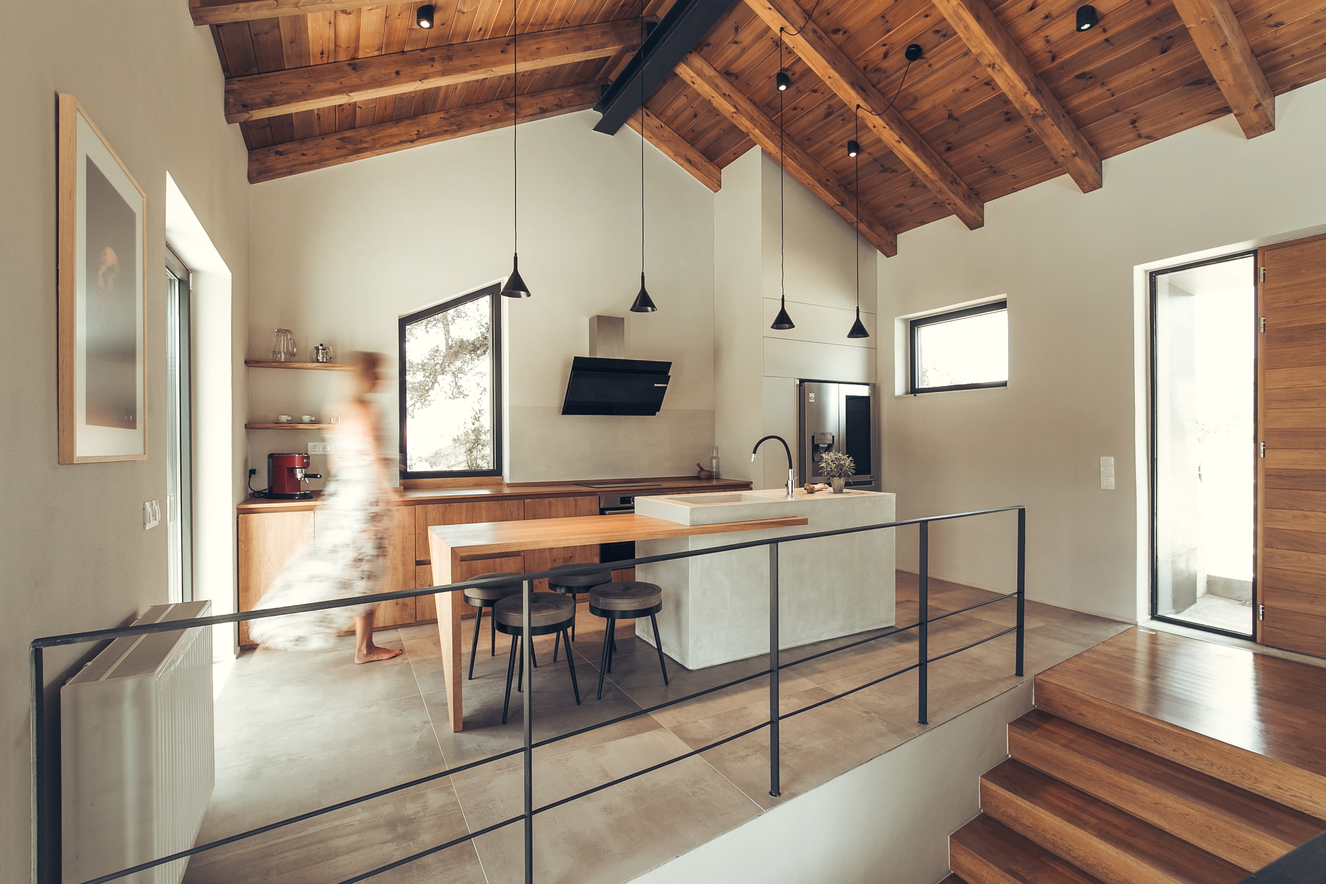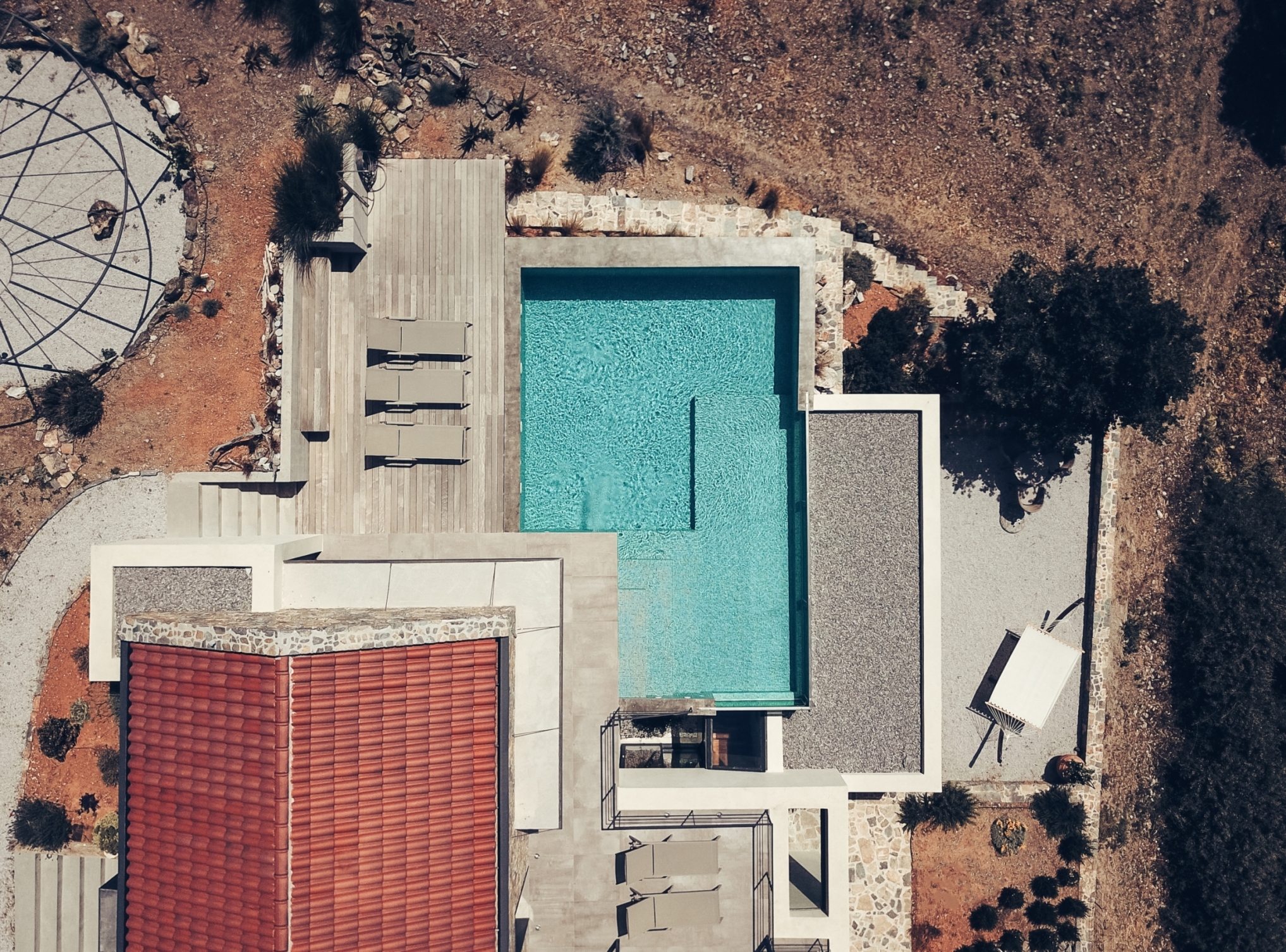 수영장은 일부가 침실의 위층에 겹쳐있는데 이는 태양열을 흡수하고 조절하는 기능도 병행합니다.