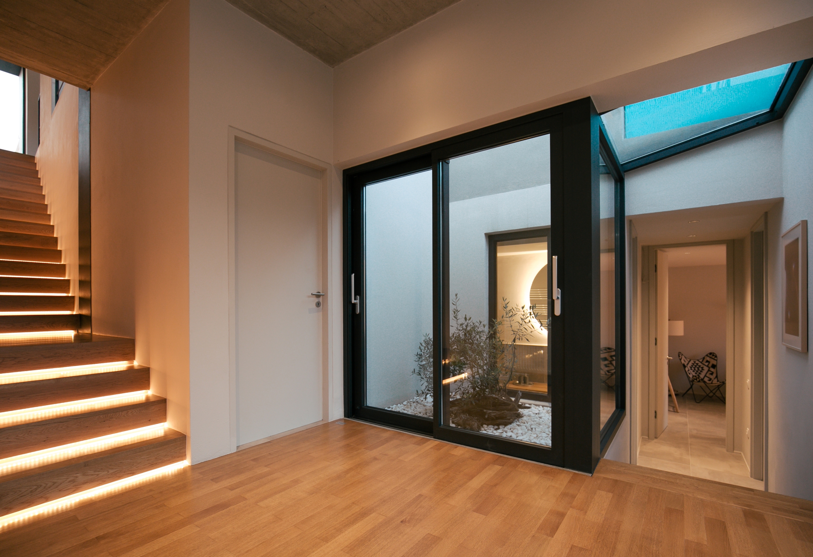 출입구에서 시작되는 계단이 자연 환기를 유도하는 굴뚝 같은 역할을 하도록 계획되었으며