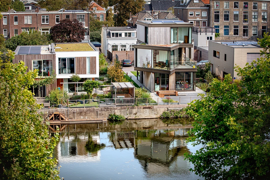 네덜란드 도심 수로변에 지언진 독특한 외관의 3층 주택입니다.