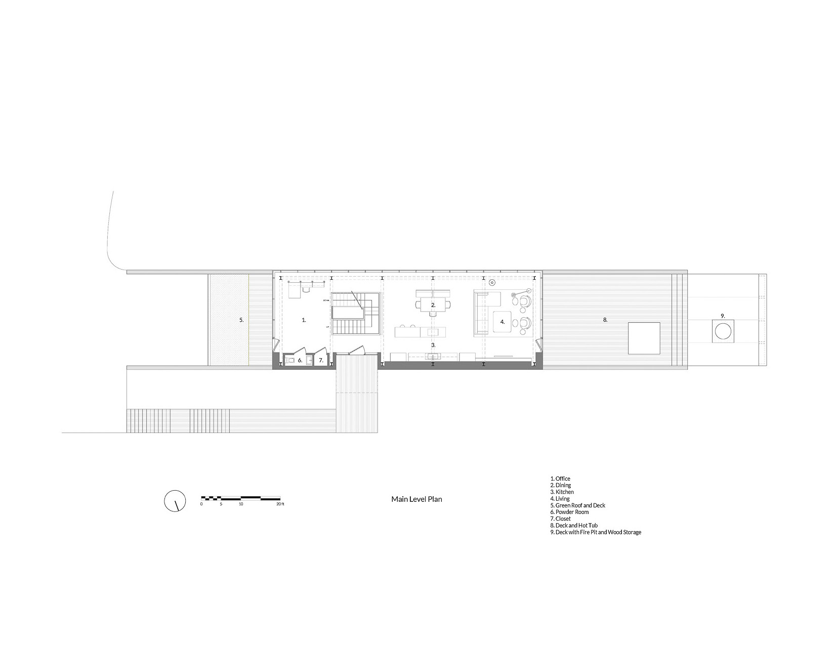 메인층인 2층은 공용 생활 공간으로 넓게 개방적인 형태를 띄고 있습니다.