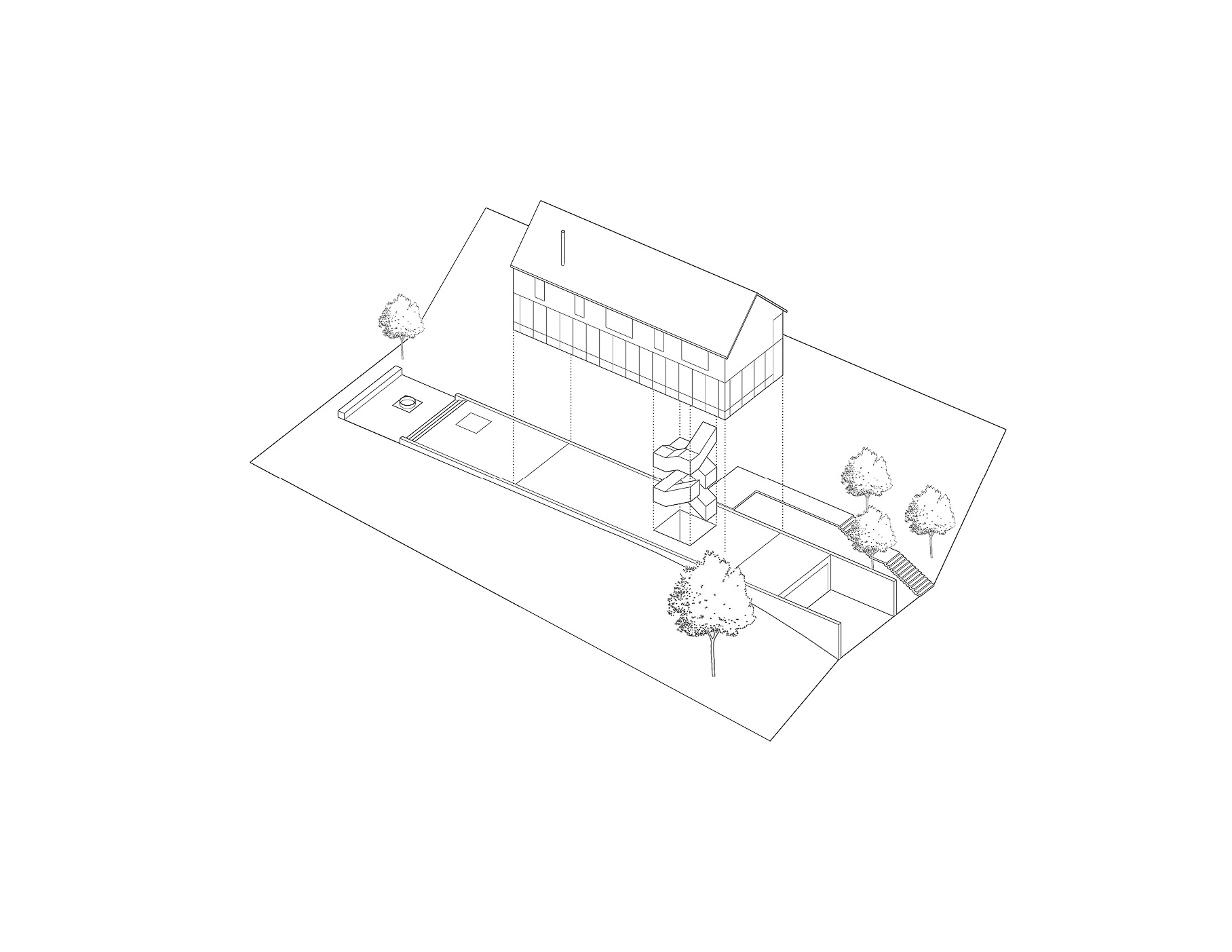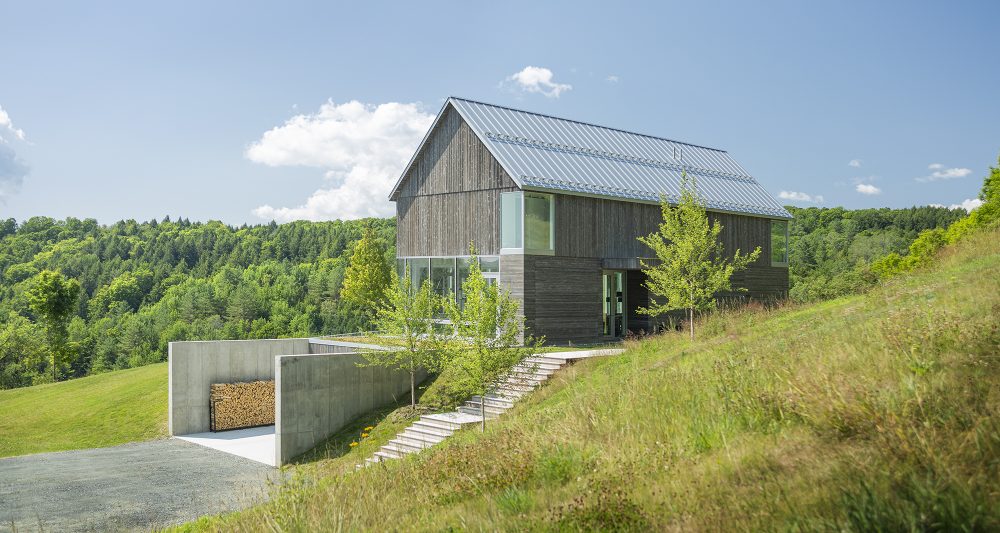 이 집의 형태와 지어진 위치는 지역의 농업 건물들인 BANK BARN을 참고하여 지어졌습니다.