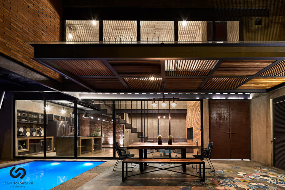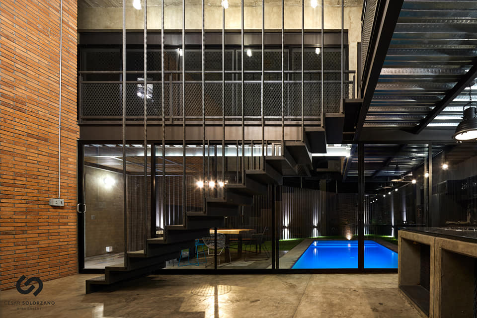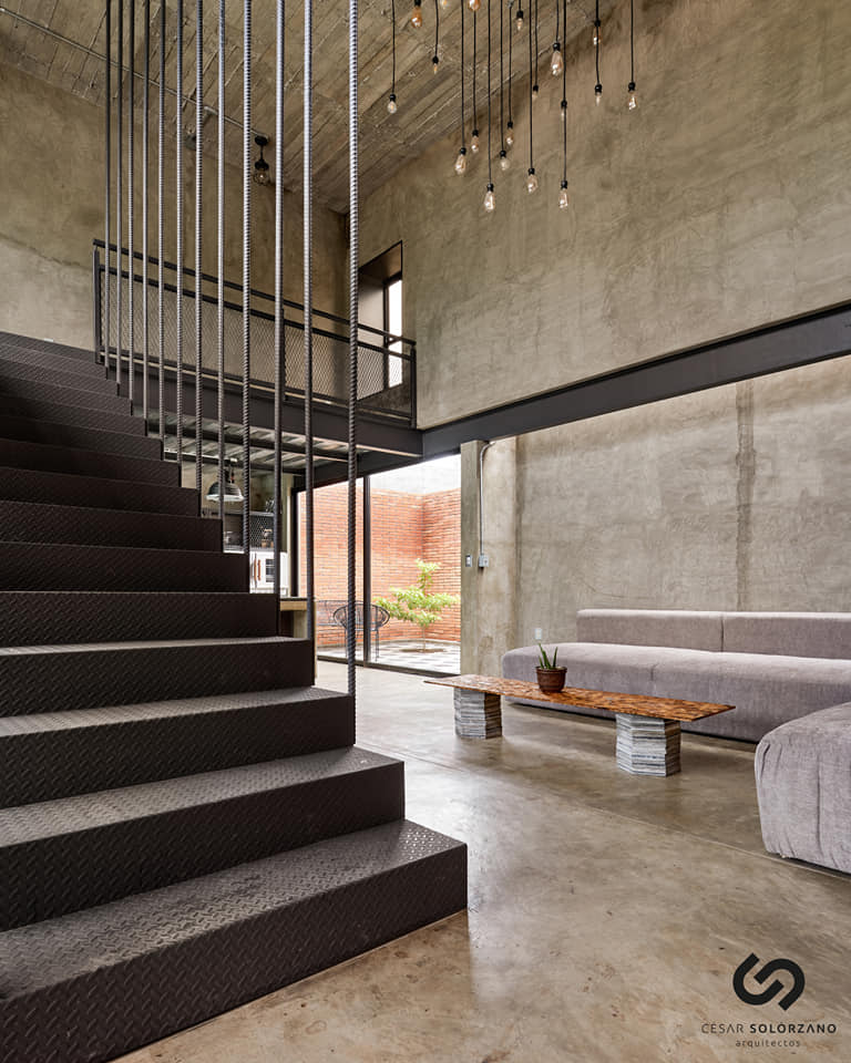 멕시코의 삼각형 대지에 지어진 인더스트리얼 컨셉의 집입니다.