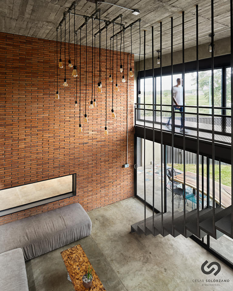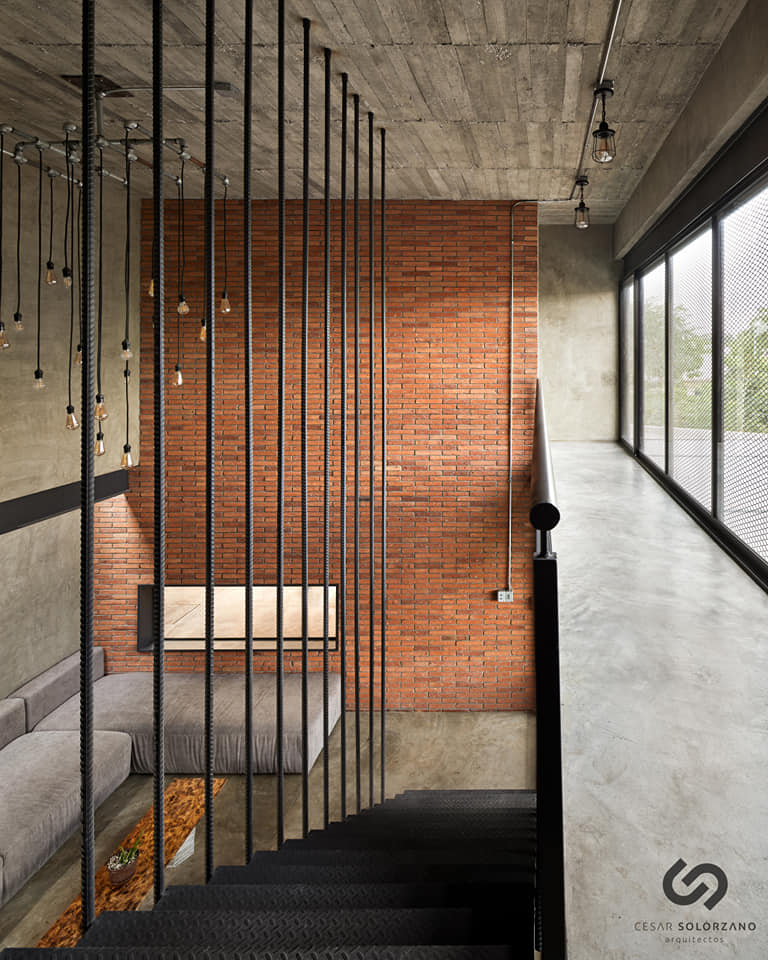 인더스트리얼 디자인 컨셉으로 인해 집의 외관과 내부에 저 채도의 어두운 분위기의