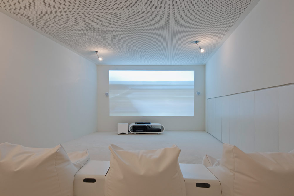 외관은 올 화이트 톤의 집이지만 내부는 입구와 지하층의 영화관은 화이트 톤으로