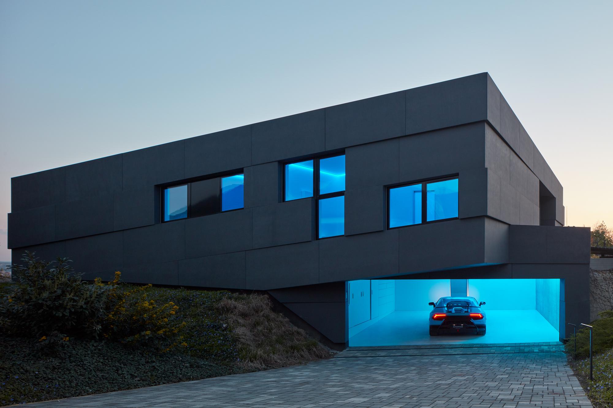해가지면 파란색 조명이 켜지고 분위기에 따라 조명색이 달라지며 방문객에 따라 알아서 문을 열어줍니다.