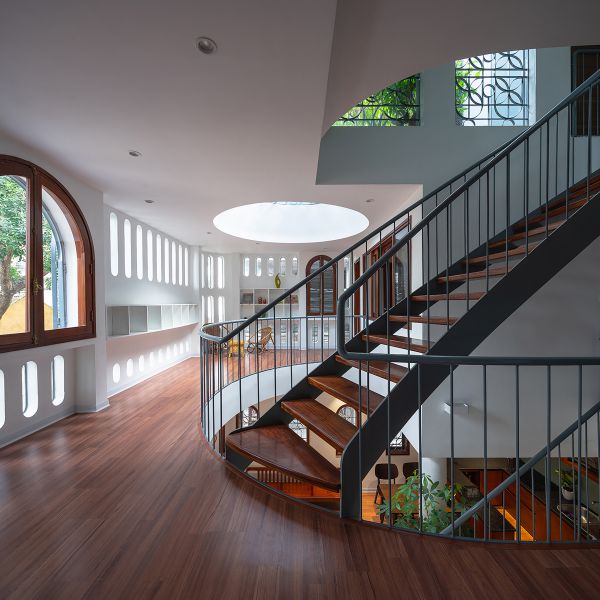 특히 2층은 거실 양 끝에 서재로 통할 수 있는 문을 두어 순환이 가능하도록 만들었습니다.