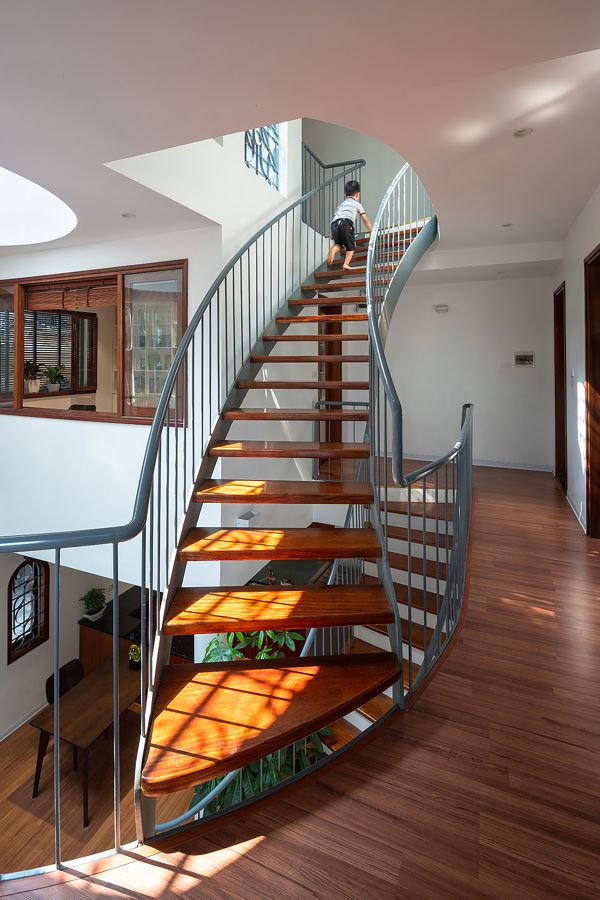 주방과 식당 거실은 1층에 위치해 있습니다. 2층과 3층을 관통하는 계단 옆 보이드 공간이