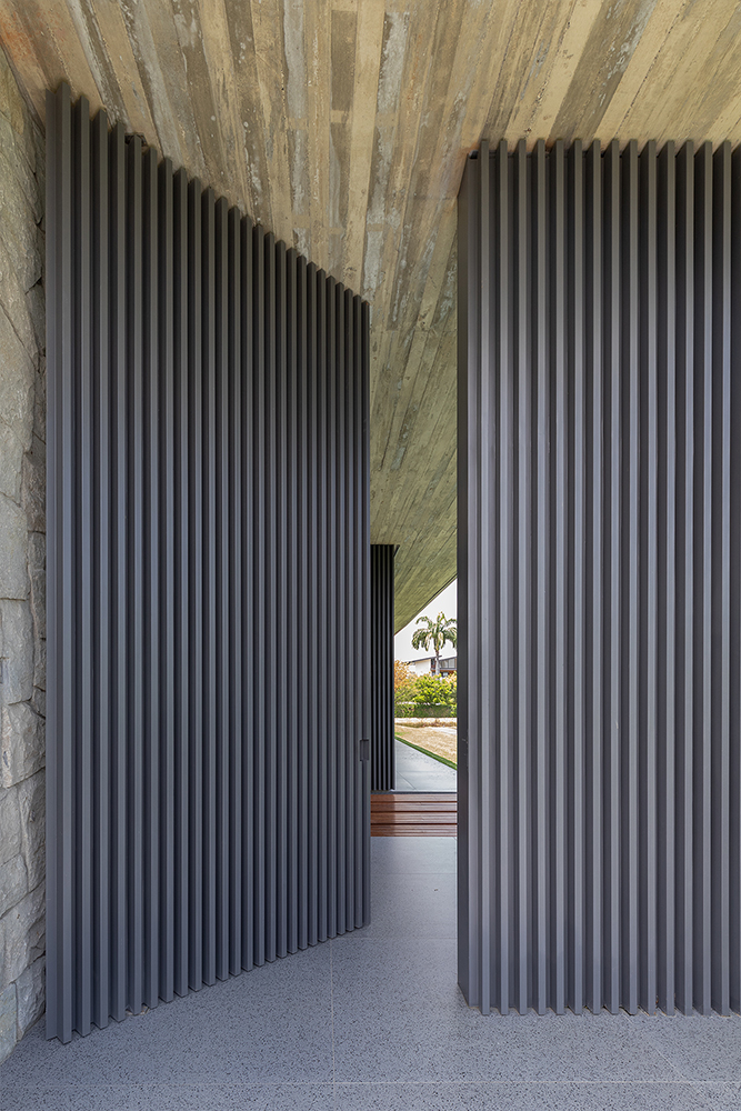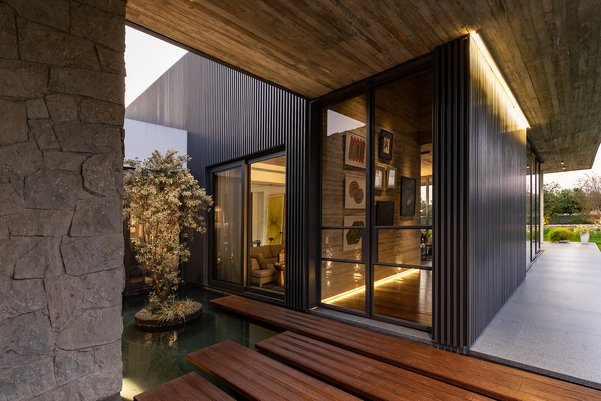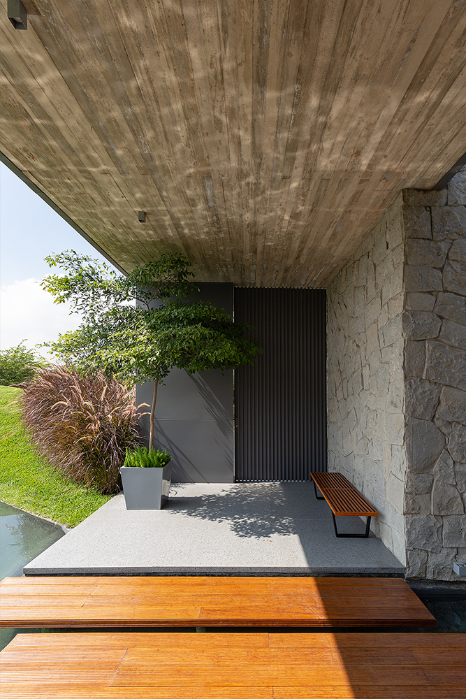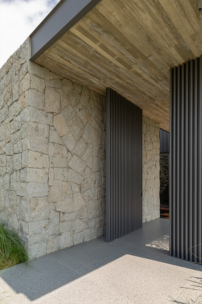 외관의 자연적 석재와 강재가 혼합되었고 노출 콘크리트 또한 다양한 질감중의 하나입니다.