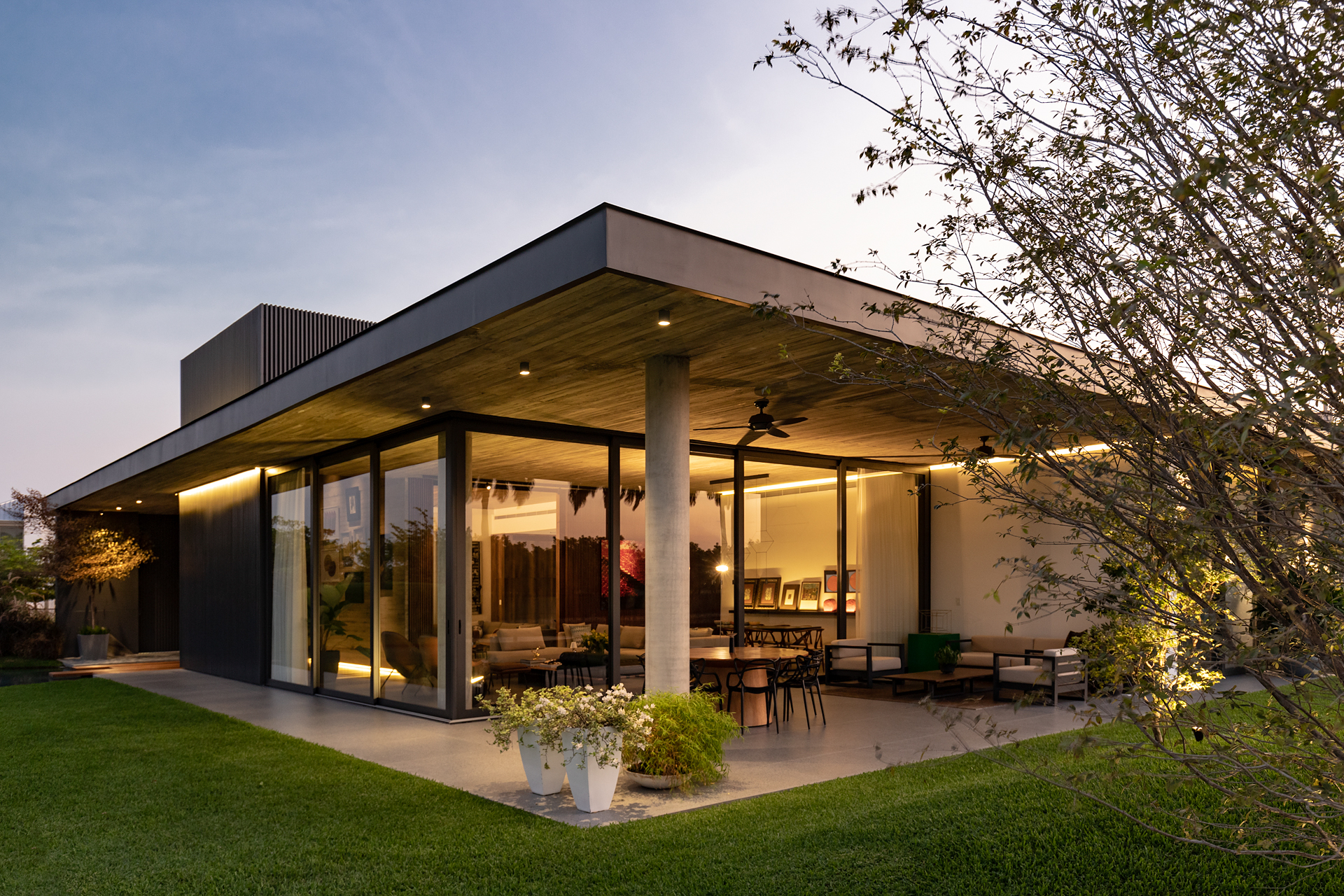 파티오를 잘 활용하였고 바닥부터 천장까지 통으로 이어지는 유리는 시각적으로도 경계를 허물어 줍니다.
