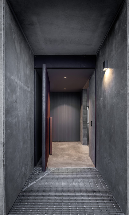 전반적으로 내부와 외부 모두 노출콘크리드와 나무 소재를 중심으로 마감이 되었고