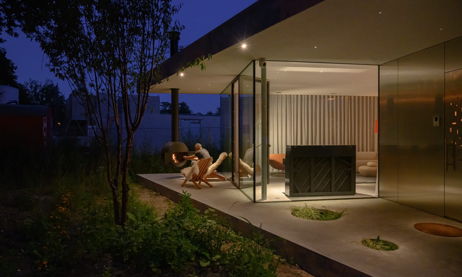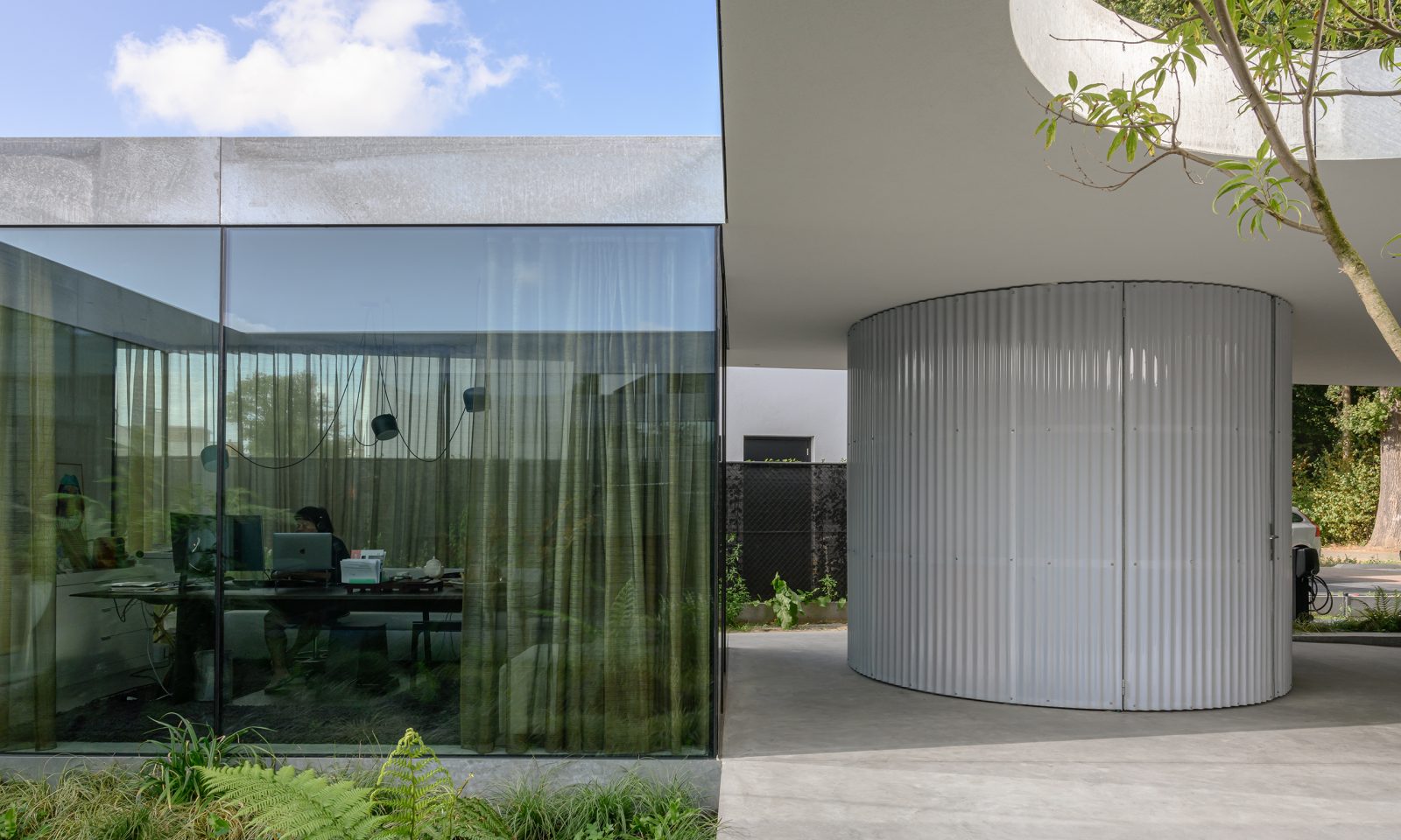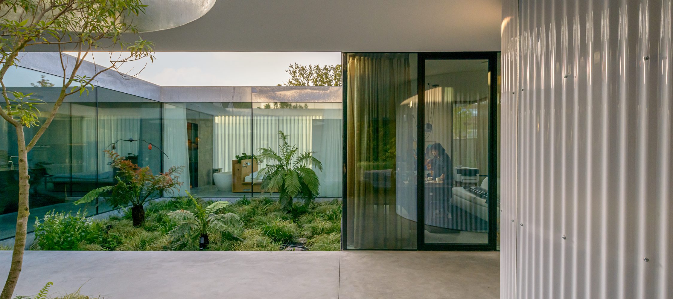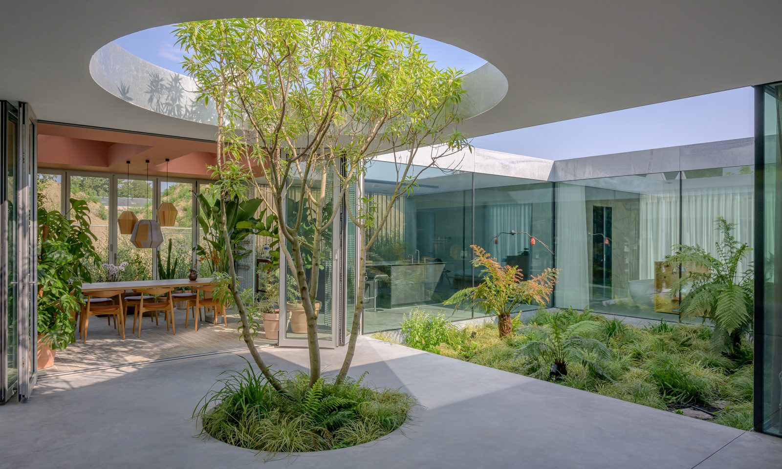 건축가는 내부와 외부가 번갈아 배치되어 안과 밖의 구분이 모호한 집이라고 설명합니다.