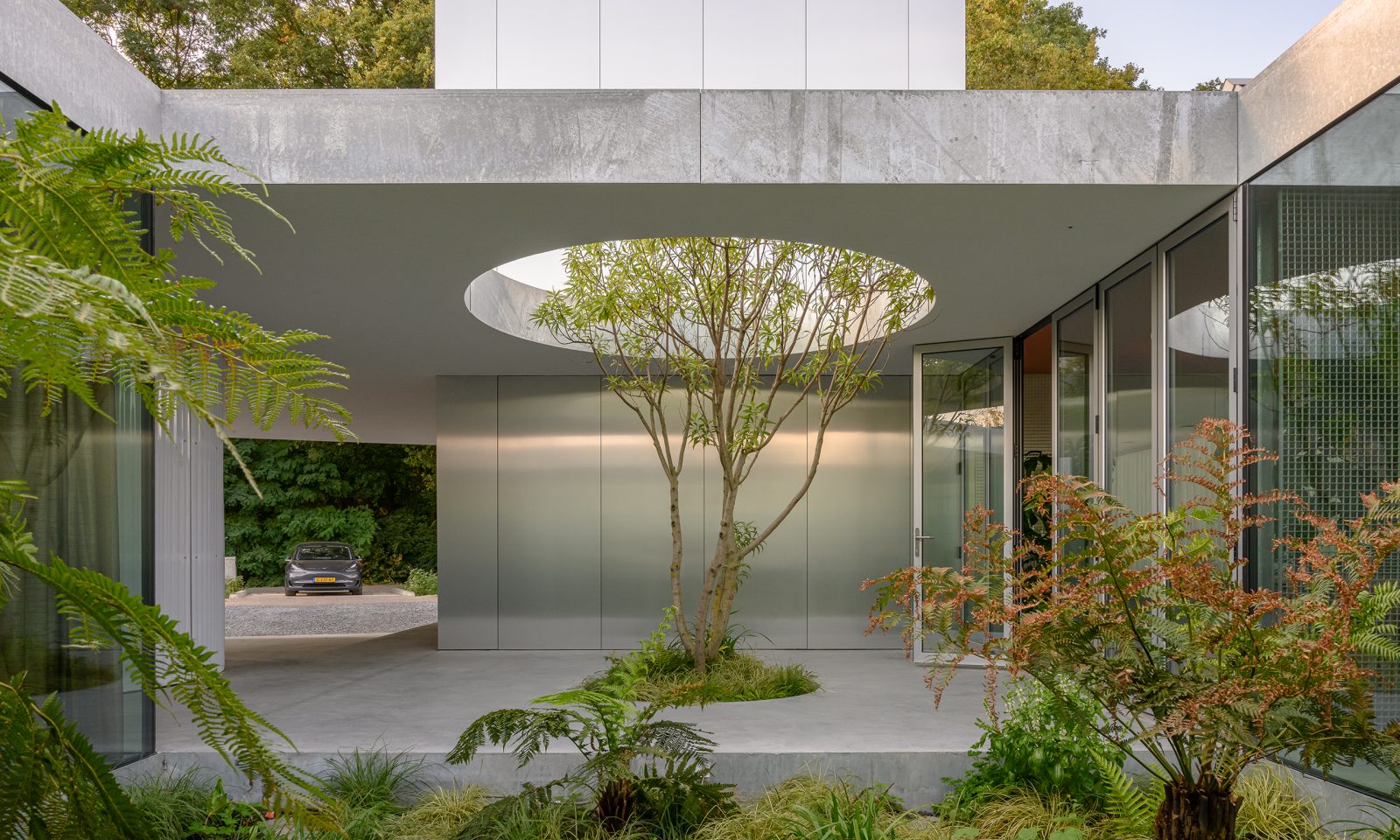 자연과 노출콘크리트의 조화속에 인터스트리얼 디자인 요소가 가미된 미니멀한 디자인의 집입니다.