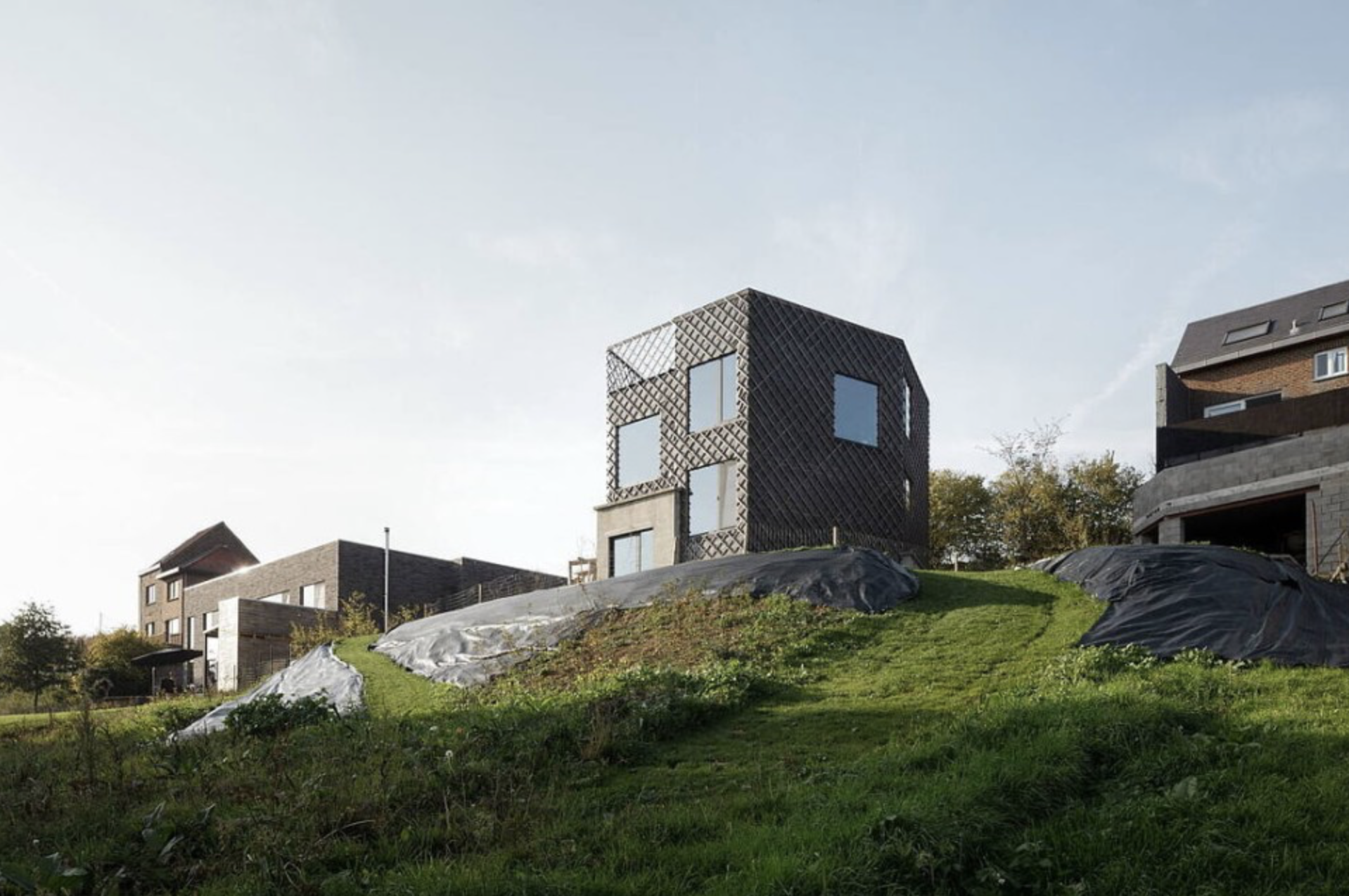 작지만 단단한 느낌이 드는 비탈에 세워진 집입니다.