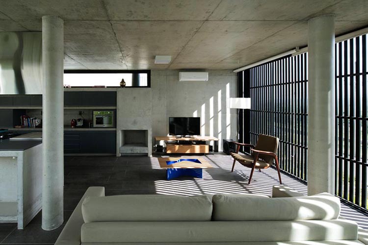 내부와 외부 전체적으로 노출 콘크리트로 마감 되었으며 포인트로 블랙이 프레임에 적용되었습니다.