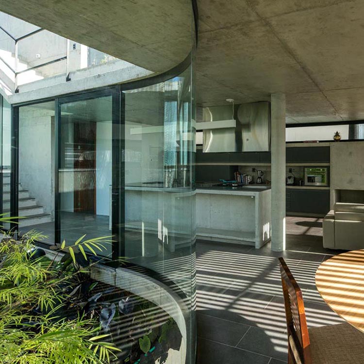 중정면의 유리도 곡선을 사용하여 만들었는데, 시각적으로 방해받지 않도록 하기 위함이며
