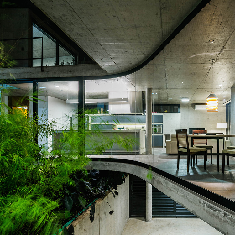 내부와 외부 전체적으로 노출 콘크리트로 마감 되었으며 포인트로 블랙이 프레임에 적용되었습니다.