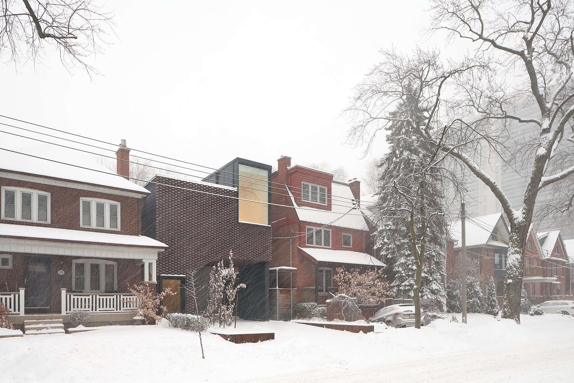 캐나다에 위치한 이 벽돌집은 외관의 특이한 조적 모양으로 주변 집들 사이에서 단연 돋보입니다.